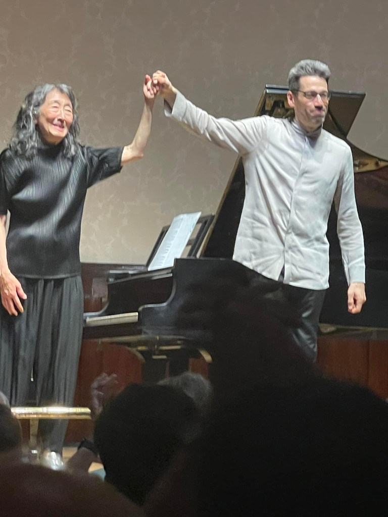 Even the genius of Uchida could not prevent the tedium of a series of dances with every repeat noted with intellectual punctiliousness that made this divertissement not very ‘divertente’ clocking in at fifty minutes. There were some beautiful things because we were in the hands -four -of masterly musicians. The gentle lilt of the Allegretto finale so beautifully played sent me finally to sleep perchance to dream of the wonders they had shared with us in the first half of the concert. Performances that will remain with us,as Mitsuko has said when asked for a selfie in the Green room in Perugia ,a photo should be like a beautiful memory and not a fixed image that may appear instantly on the other side of the globe.