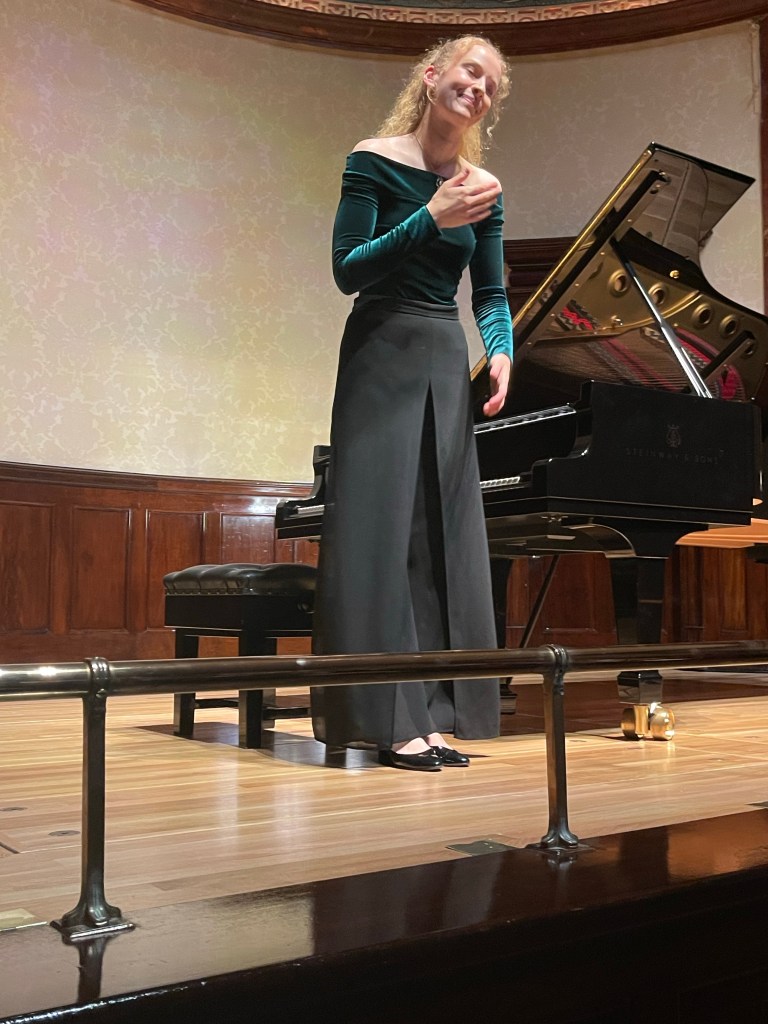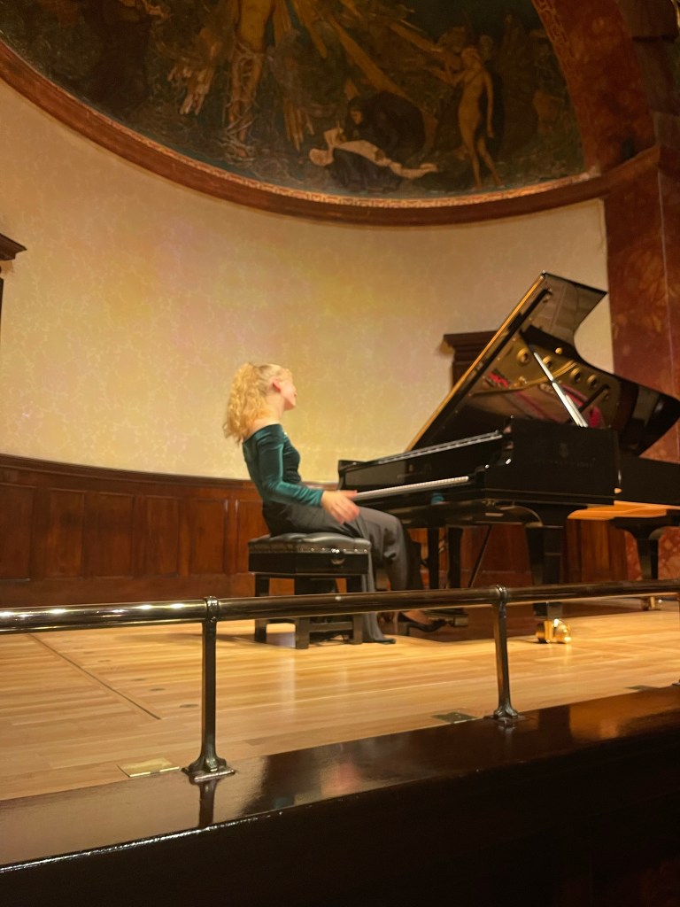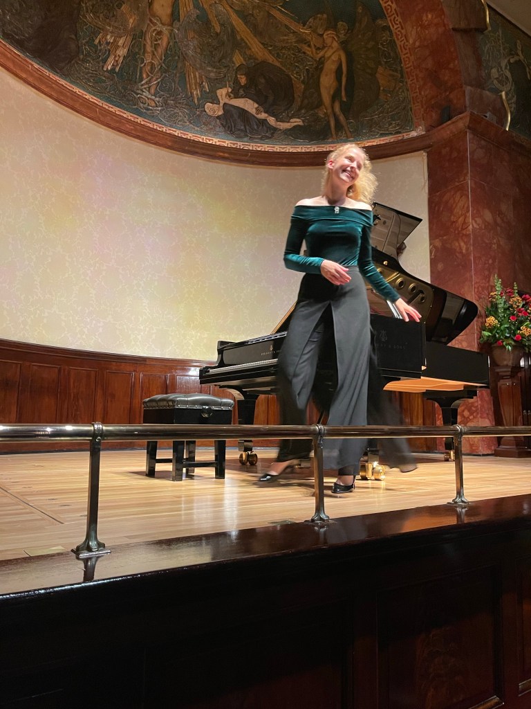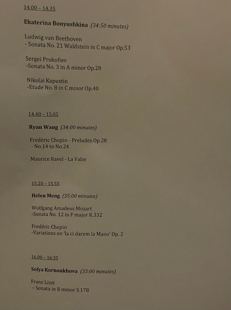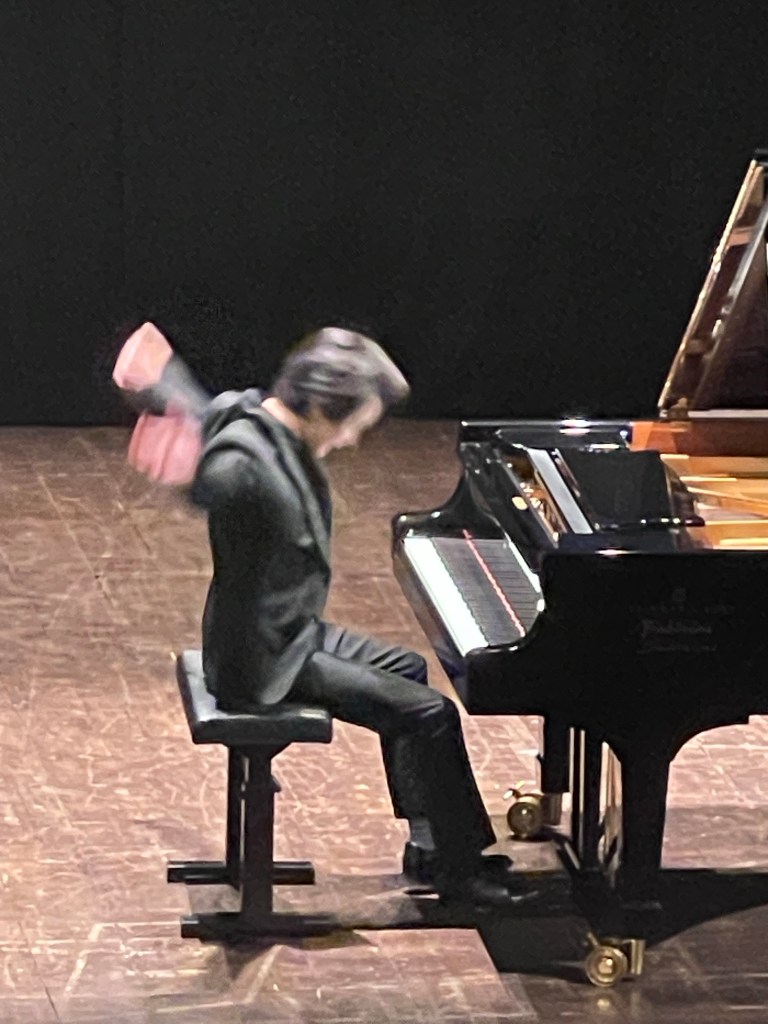 ‘Paganini’, the inspiration for Liszt, was played with superb technical control and impeccable phrasing all amazingly at breakneck speed.Laying exhausted ‘Aveu’ was played with whispered delicacy.’Promenade’ drifting in like a dream fantasy full of capricious freedom.An exhilarating virtuosistic pause lead to the ‘March against the Philistines.’Non Allegro asks Schumann but Elisabeth was on the crest of a wave that swept all before her,including us the audience,as she opened up all the stops in her kaleidoscopic technique to carry us with her in this final collection of flashing past episodes leading to the excitement and race to the finish.