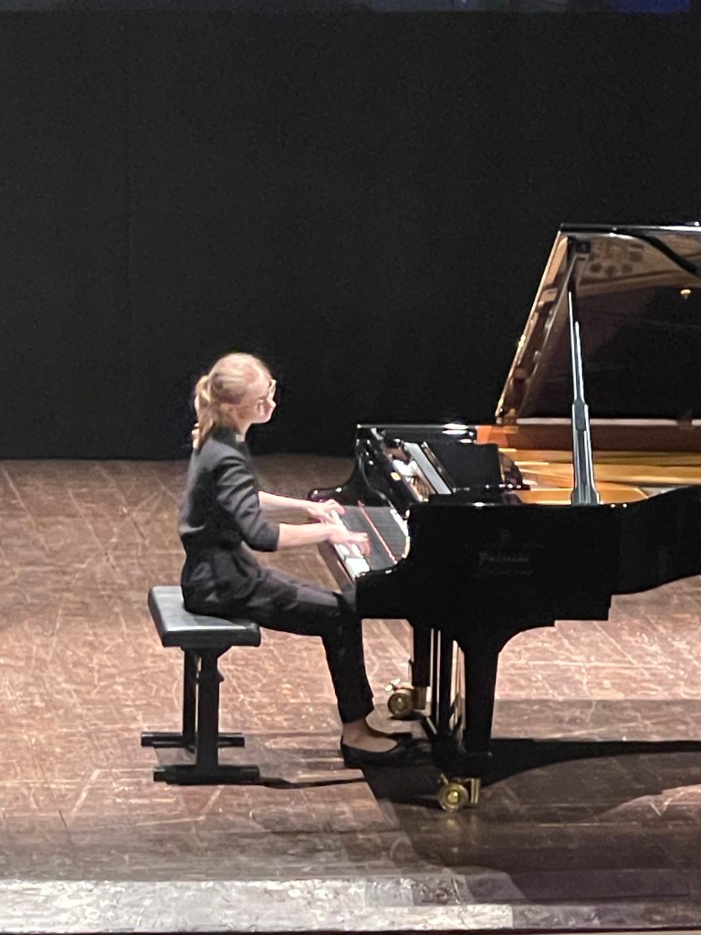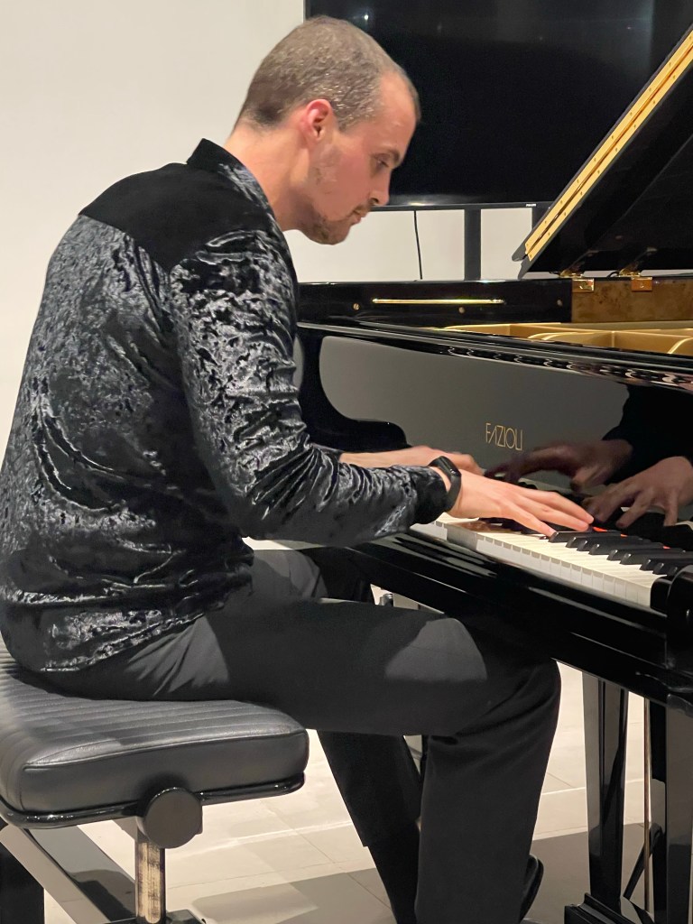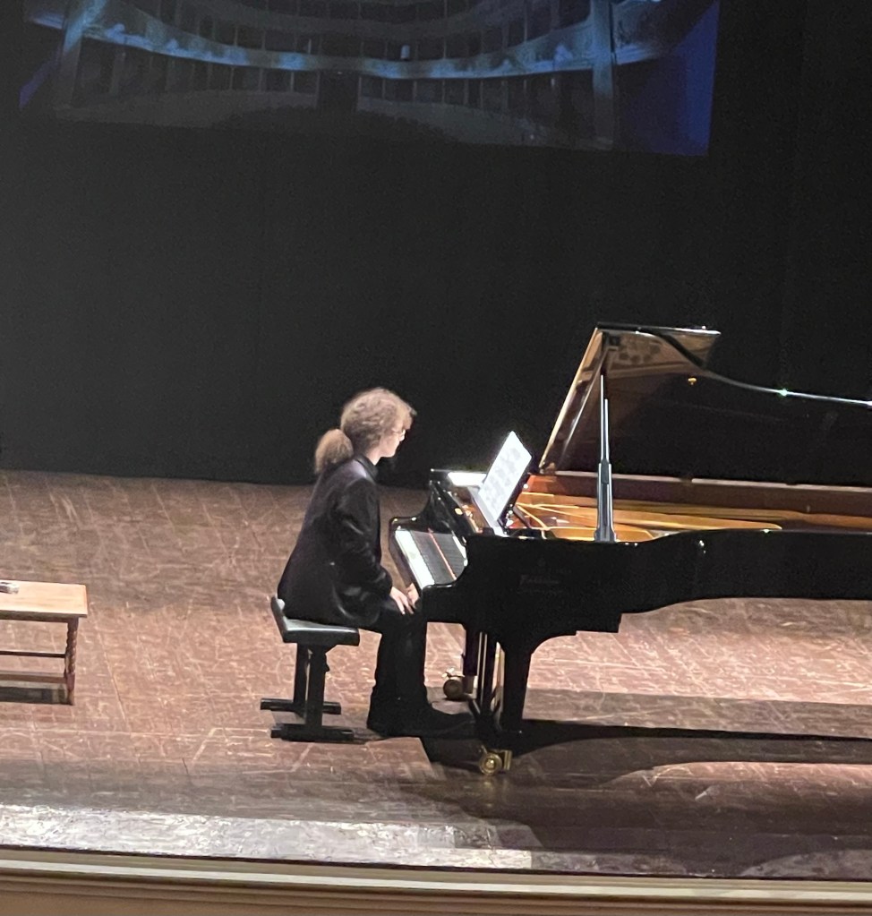 Scintillating busy ‘Papillons’ buzzed over the keys with streams of beautifully shaped sounds and the ‘Letttres dansantes’ literally bounced off the keys.’Chiarina’ was strangely Beethovenian in its vehemence but with some very clearly etched inner melodic lines.’Chopin’ then entered on the same whirlwind of sounds inspired by ‘Chiarina’ which made the unwinding of such a passionate outpouring an oasis of ravishing luminosity and whispered beauty.’Estrella’ was very rhythmically played and contrasted with the superb agility and shape of ‘Reconnaisance’.The sublime beauty of the central episode made the return of an old friend feel like a breath of fresh air blowing over the keys.There was fleeting lightness to ‘Pantalon et Colombine’ usually played by lesser artists with machine gun like precision but where in Elisabeth’s sensitive hands the final bars of a sweet afterthought was the ideal preparation for the coquettish charm of the ‘Valse allemande’.