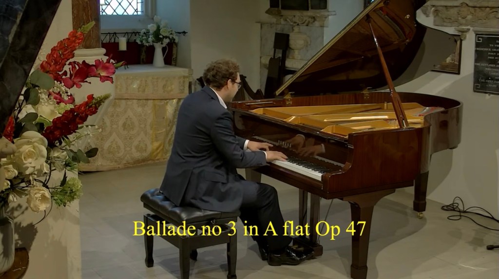 The elusive fugue was played with absolute clarity and beauty of sound as each strand was beautifully shaped with its yearning insistence.Lovely to read in the programme notes Alfred Cortot describing the fugue as ‘timid voices of nuns at prayer,the gentle atmosphere of the cloister,resigned peace of the spirit’