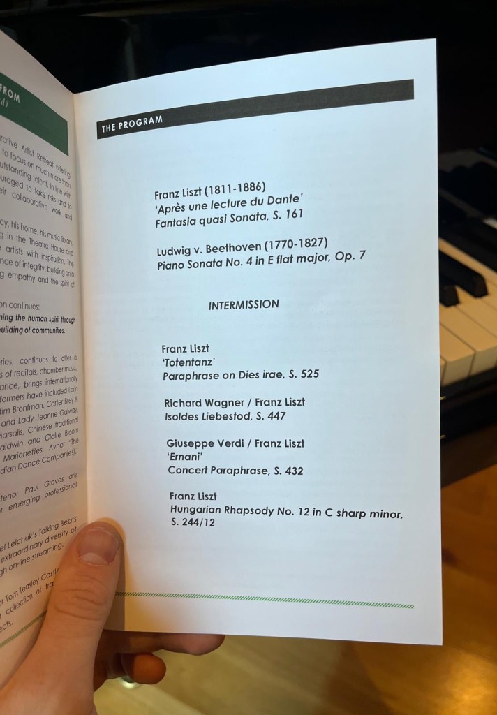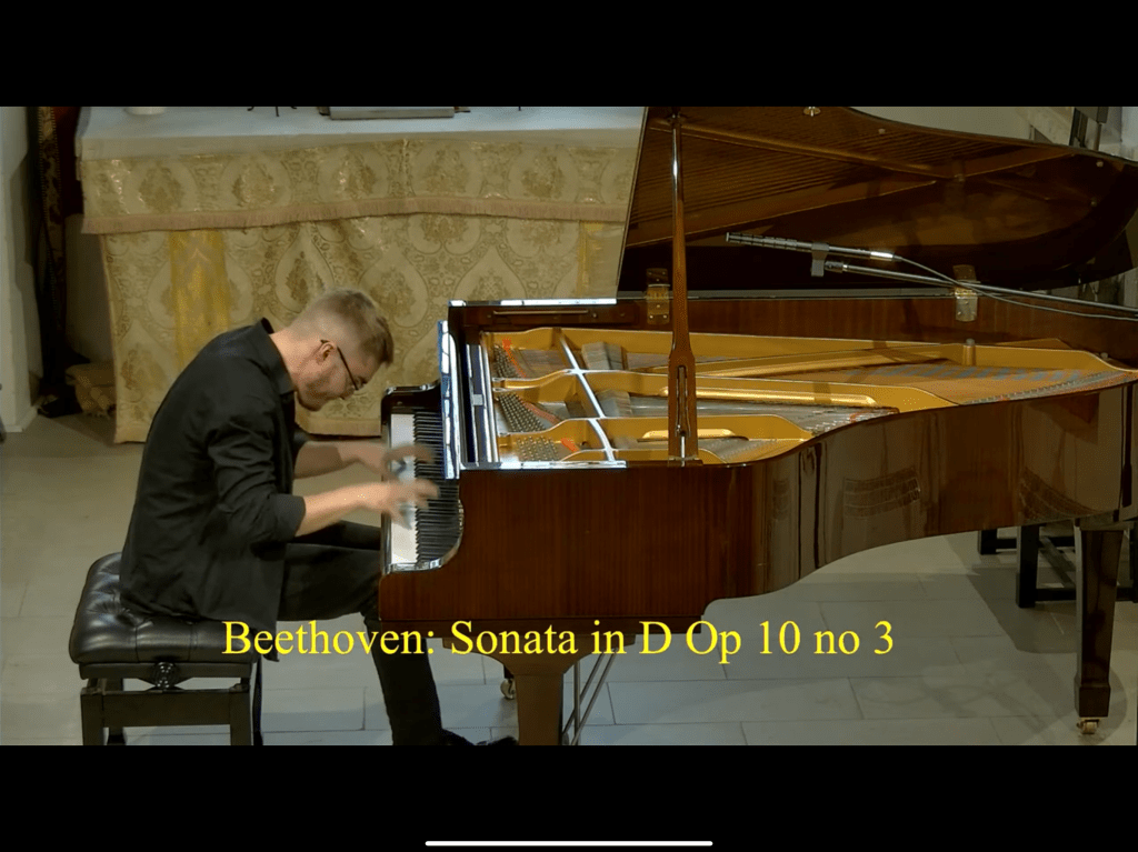https://youtube.com/live/kO29-nPp9wY?feature=sharedA dynamic drive from the very first notes like a tiger let out of a cage ready to go on the rampage.There was a great sense of characterisation – joyous playing of total conviction.The beauty and measure in the Largo was of noble sentiment played with the weight of really intense feeling.There was refined beauty to the presto as it sprang to life with such vitality as he lived every moment bringing it to life with astonishing freshness and innocence.What a noble opening to the Liszt echoed only in the encore of Rachmaninov’s Etude Tableau op 33 n. 8 .Embellishments thrown off with an ease and sense of style of extraordinary mastery.His whole body involved with an elasticity as he swam in a sea of sumptuous sounds.Fantastic authority and an amazing volume of sound as the melody in the bass was accompanied by arabesques of quite extraordinary virtuosity.Intelligence,passion and virtuosity and showmanship that is an integral part of these tone poems that Liszt would have astonished his adoring audiences with during his days as the greatest showman on earth.
