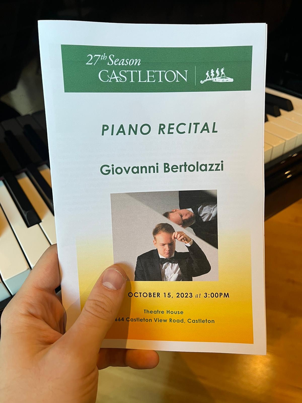 Giovanni Bertolazzi ,in my opinion the finest pianist of his generation,on tour in the USA for the Keyboard Trust ………starting in the beautiful theatre that Lorin Maazel create on his estate in Virginia on my birthday 15th October and proceeding to Washington 17th ;Philadelphia 18th;Delaware. 20th ;New York 21st.