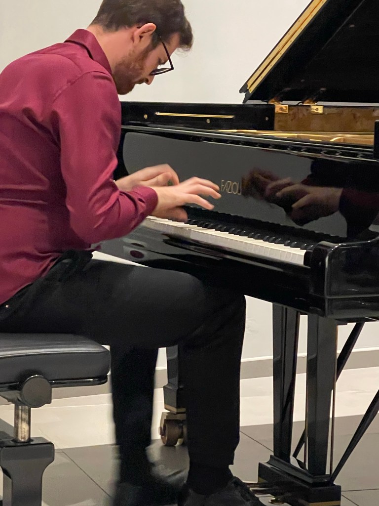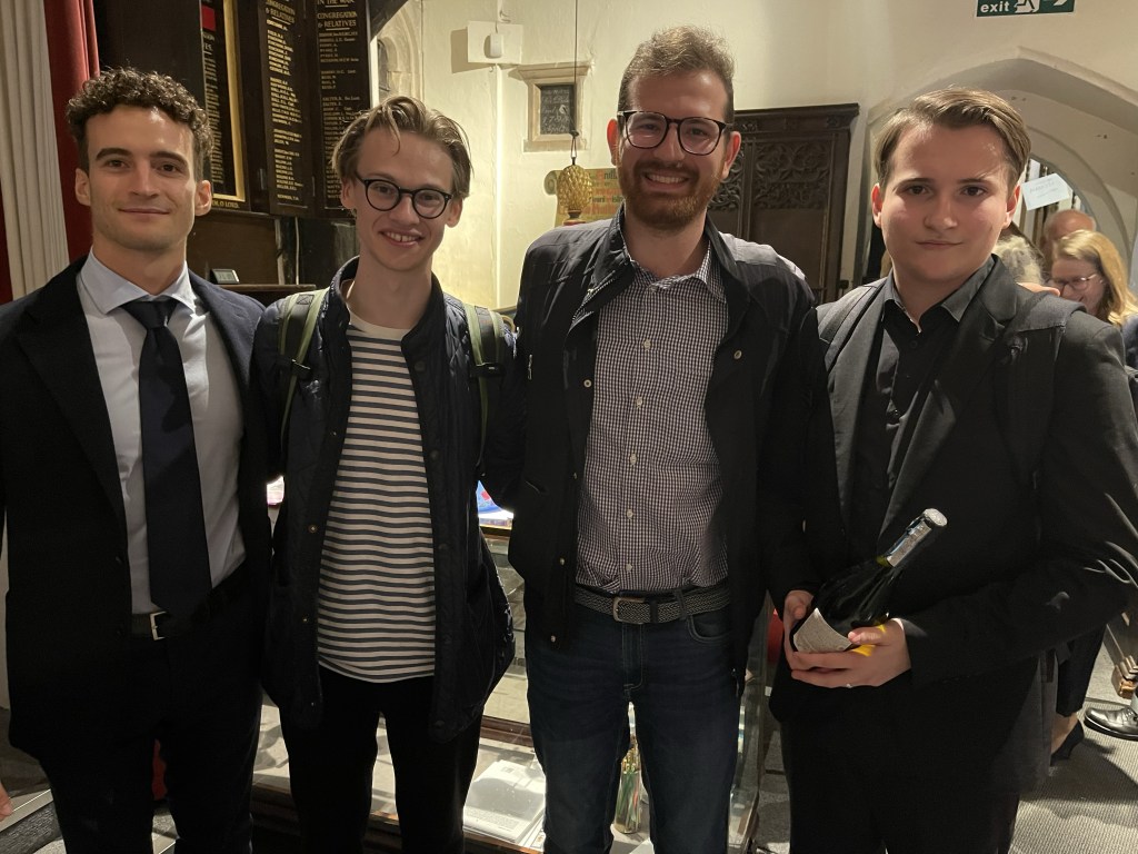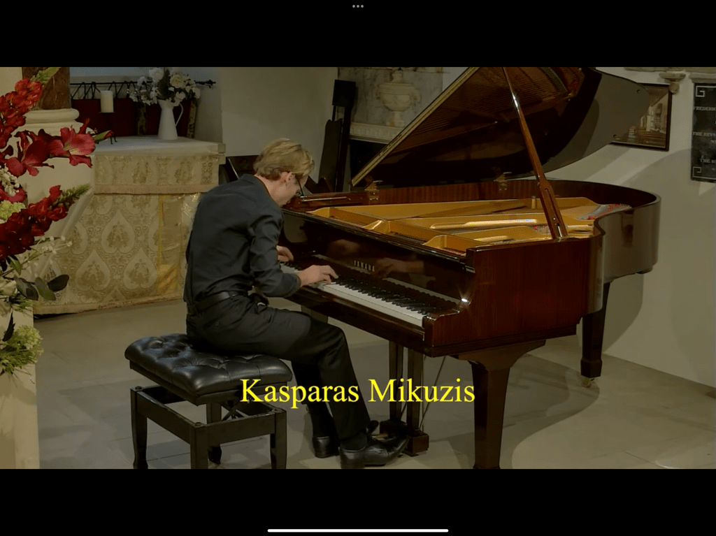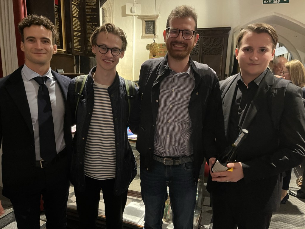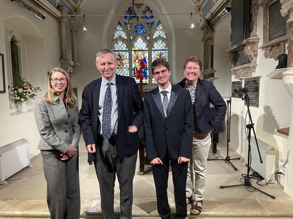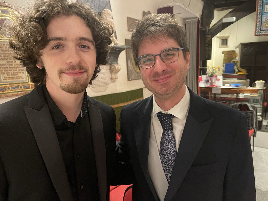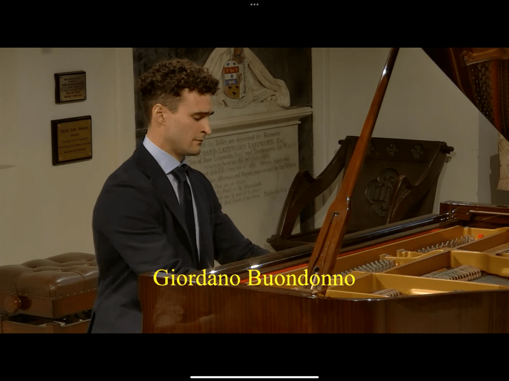 Roger Nellist writes :”A second day of fabulous recitals by 5 international pianists playing in our Autumn Piano Festival, run jointly with the Keyboard Charitable Trust. Just so many effusive comments were offered about their performances from audience members in the church and from the numerous online viewers (with several pianist friends today in Italy and Bolivia, as well as our usual followers in Poland, USA, Canada and UK). Today, KCT Artistic Director Christopher Axworthy interviewed each pianist after their performance, adding much interest to the day. He will prepare a more detailed review but for all of us this two-day festival has been a musical triumph – which ended in something of a party atmosphere with pianists, KCT organisers (Christopher, Elena and Sarah Biggs), St Mary’s team and some in our audience chatting together and photographing afterwards. It was especially good to see some of our pianists staying to hear the others play. So, very special thanks for their impressive performances go to: JOSE NAVARRO-SILBERSTEIN (Bolivia), FILIPPO TENISCI (Albania/Italy), GIORDANO BUONDONNO (Italy), KASPARAS MIKUZIS (Lithuania) and MISHA KAPLOUKHII (Russia).