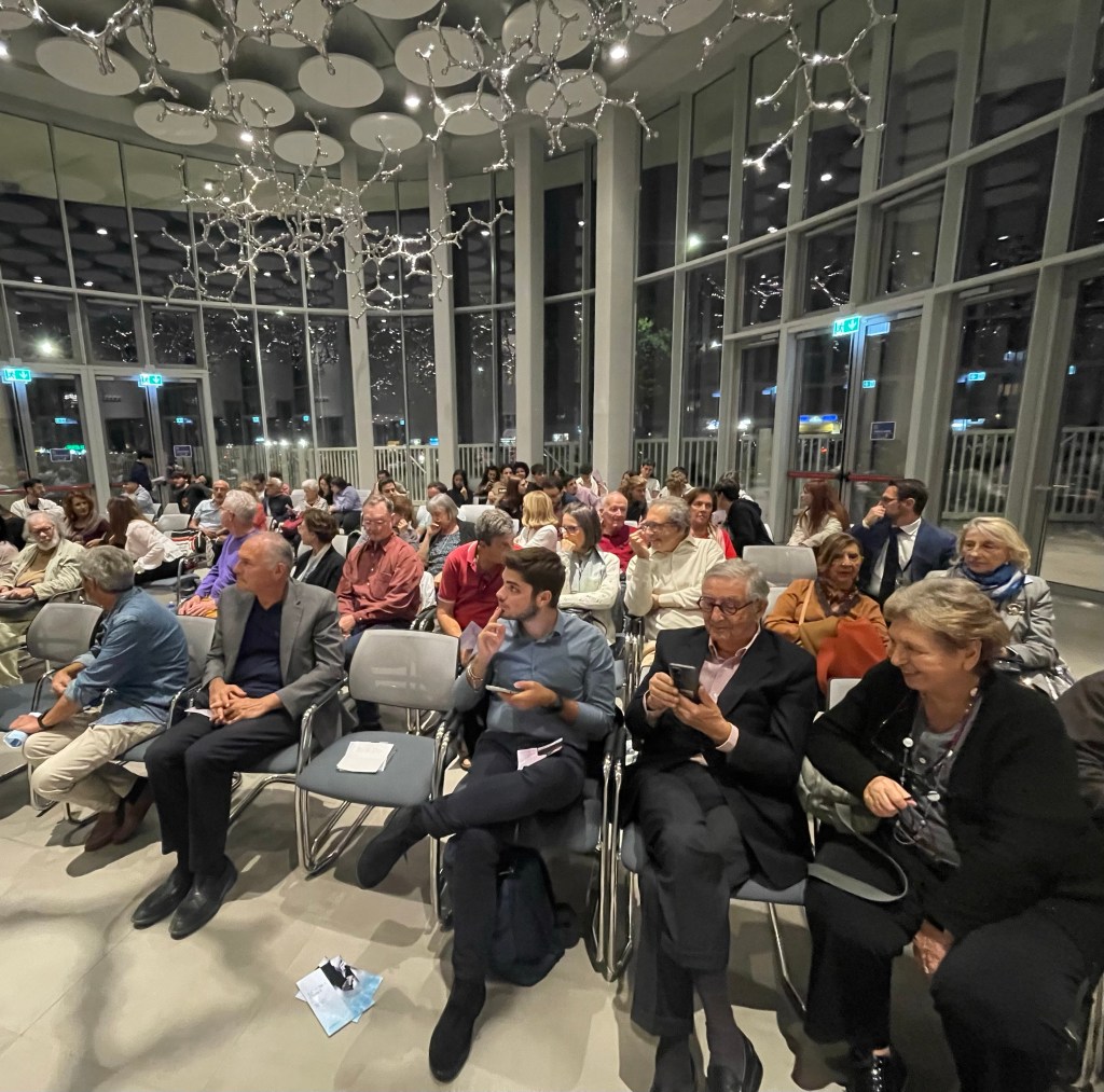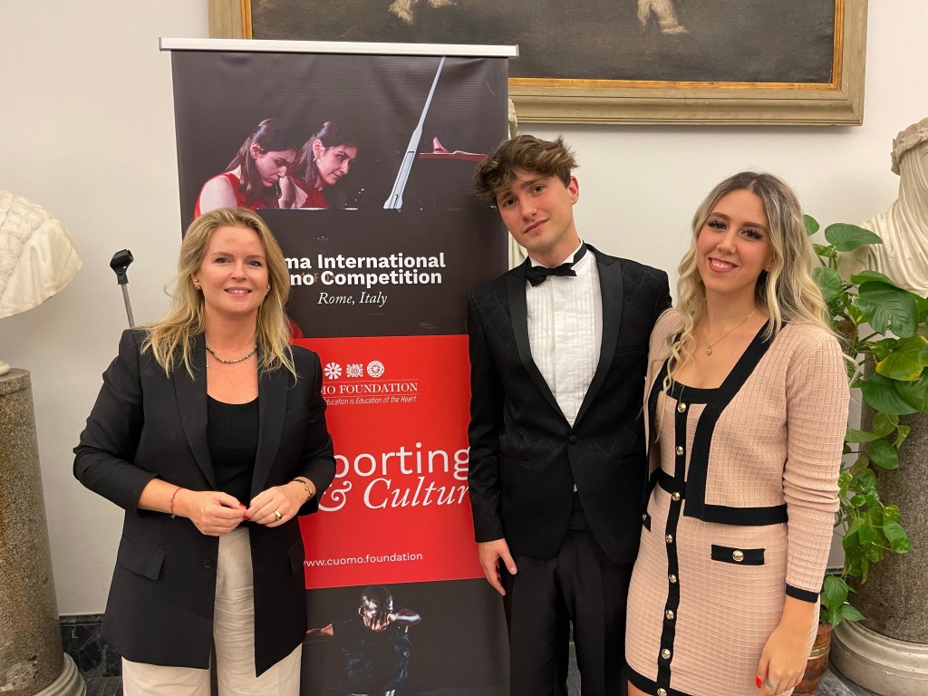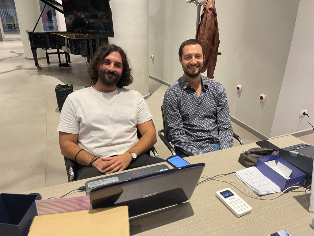 Two of Valerio’s most faithful companions dedicated to helping Roma Tre orchestra President and Artistic director greeting the large mostly young public in their splendid new venue for the Young Artists Piano Solo Series
