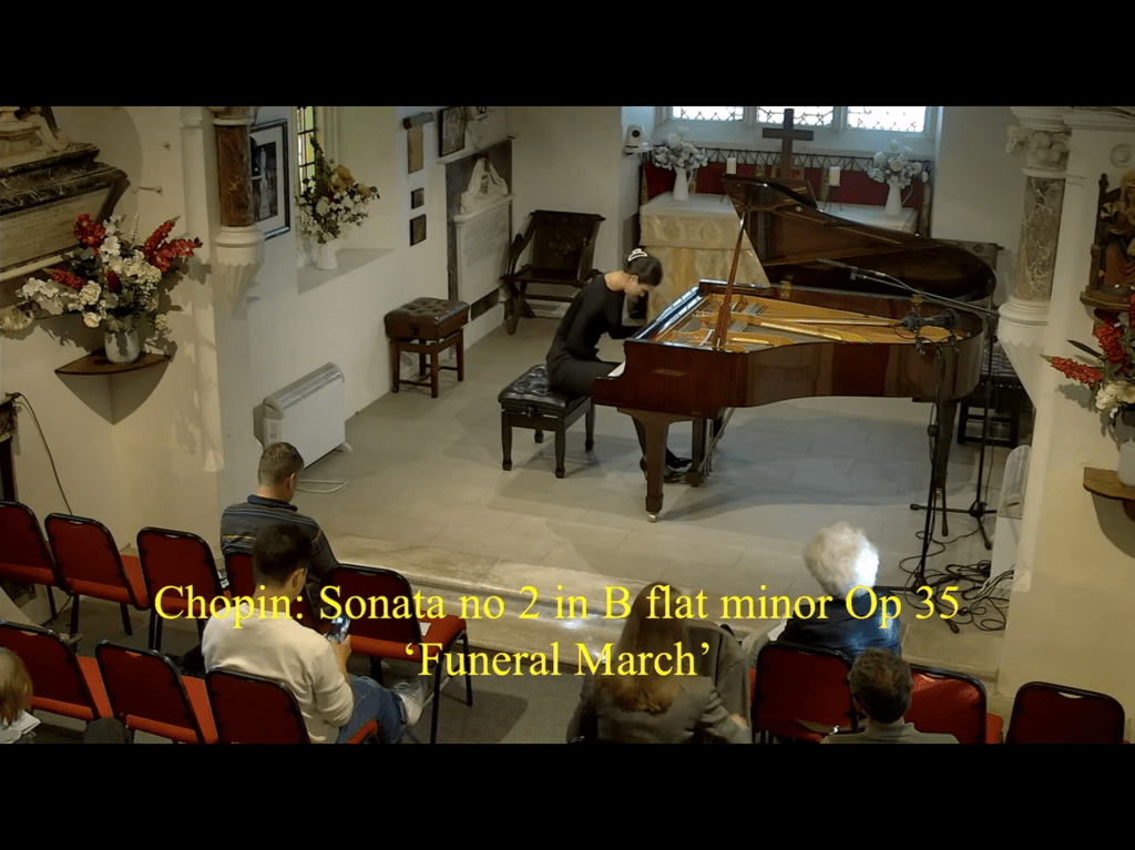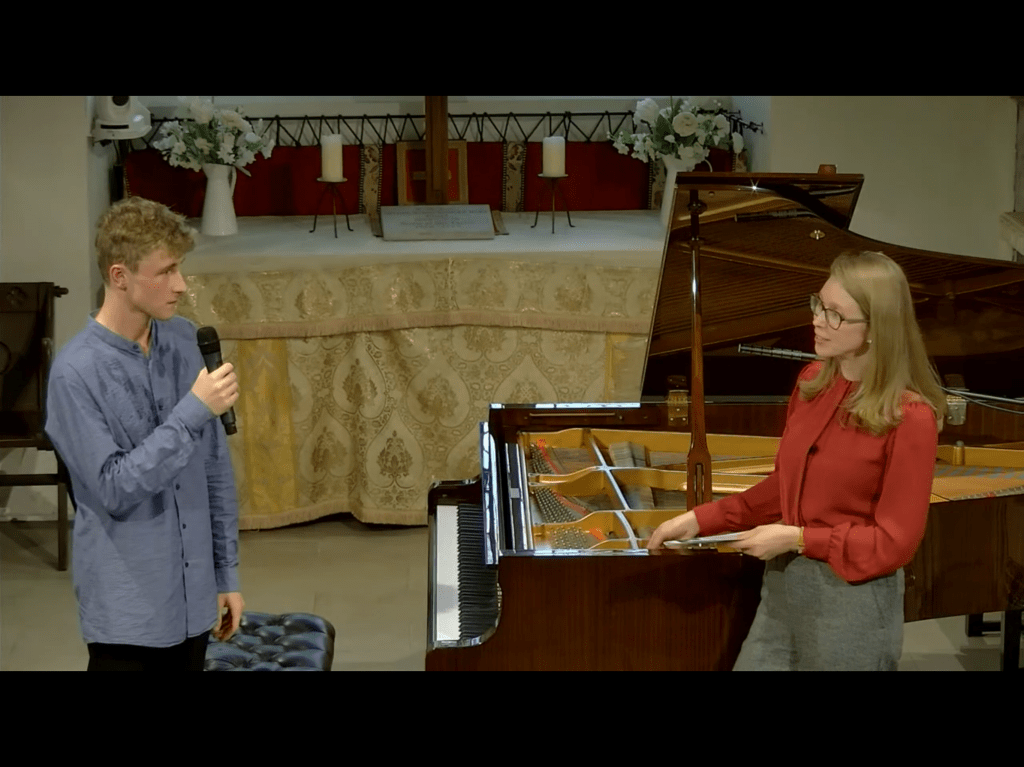 Elena Vorotko -Dr Hugh Mather -Antonio Morabito – Sarah Biggs Dr Mather presenting Zala the first of five remarkable pianists .Roger Nellist of St Mary’s writes :”As expected, a remarkably high standard of musical performance by all 5 pianists during the first day of our Autumn Piano Festival today, run jointly with the Keyboard Charitable Trust. ‘Exceptional’, ‘excellent’, ‘fabulous’, ‘profound’ and ‘immaculate’ were some of the many compliments from the 40 or so online viewers watching our Livestream in USA, Canada, UK, Poland, Italy, Spain, Ukraine and RSA. We also had 20 – 40 followers attending in the church during the afternoon and evening sessions. Huge thanks to Zala Kravos, Nikita Burzanitsa, Ellis Thomas, Antonio Morabito and Kyle Hutchings who treated us to a feast of Beethoven, Chopin, Prokofiev, Scarlatti, Brahms, Ravel, Bach and Mozart. After each performance, KCT Artistic Director Elena Vorotko interviewed the pianists, adding to the enjoyment of this successful first day. We resume at 2pm tomorrow, Sunday 1 Oct, to hear another 5 international pianists.”Dr Hugh Mather