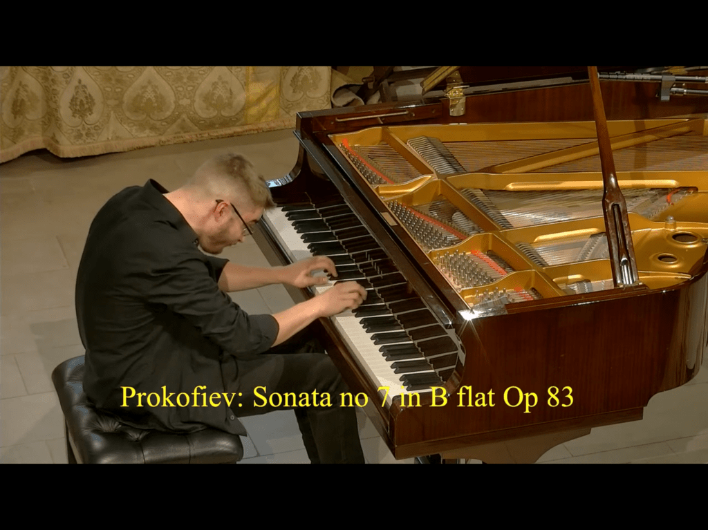 There was a rhythmic drive to the playing that with the dynamic contrasts he found was quite intoxicating.The energy that Beethoven can transmit in these early sonatas is quite remarkable as he breaks away from his teacher ,Haydn,and forges a new world in which the force of his irascible changeable temperament is quite overwhelming.There was nobility and beauty in the Largo e mesto that with his earlier Sonata op 7 is a work of visionary genius.It was played with a scrupulous attention to Beethoven’s very precise indications as you might expect from a star of Alexeev’s class at the RCM.A beautifully fluid and mellifluous Menuetto was contrasted with the questioning opening of the Rondo leading the final streams of sounds that spread across the entire keyboard with enviable precision and drive finishing deep in the bass of the piano with disarming nonchalance. And a star Nikita truly is as he allowed Prokofiev’s War Sonata n. 7 to explode before our astonished eyes.Could this be the same piano that had just given us such intelligent refined Beethoven.There was a cocktail mixture of violence and mystery with playing of great clarity and rhythmic energy but with an astonishing palette of sounds.From the whispered to the truly explosive .The Andante caloroso was just that as it was bathed in warmth with a combination of majesty and passion in an overpowering outpouring of emotion.The siren at the end of the Andante I had never been aware of until now as Nikita allowed the glass like sounds to cut through the languid atmosphere of a movement that lay exhausted from such powerful emotion.The Precipitato was played with driving energy and relentless forward movement with the passion and technical reserves of a triumphant youthful virtuoso – ‘veni vidi vici indeed!’