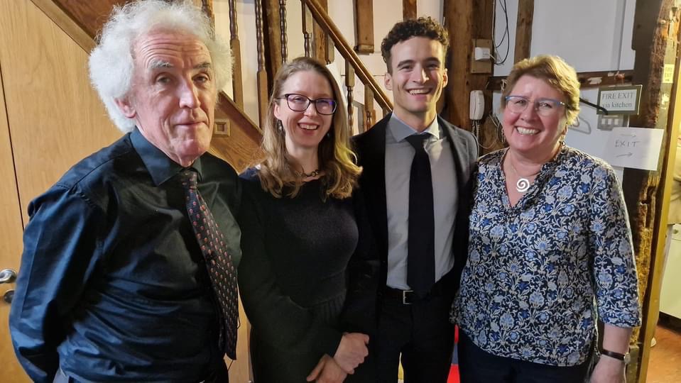 Last but certainly not least with 22 year old Kyle having started piano lessons only at the age of 12.Now with a fifteen month baby girl called Scarlett and coming straight from an onerous day’s teaching he sat at the piano and gave us performances of two of the great works for piano that were of perfection and purity.A musical intelligence as he translated the composers wishes into sound.Total concentration too as he watched his hands fly over the keyboard and extract sounds of a musician who was able to reveal secrets rarely noticed by others .The Mozart’s C minor Sonata had a dynamic drive with superbly crisp ornaments and playing of a crystal clarity of a purity with dramatic contrasts and beautifully sensitive phrasing. Subtle beauty of the Adagio which was played with a fluidity that contrasted with the drive and mystery of the Allegro assai. There was beauty and precision in Beethoven with dynamic drive allied to scrupulous musicianship.The Prestissimo was played with drive and fire with great sweep as the music drove inexorably forward.The ‘Andante molto cantabile ed espressivo ‘- the very heart of this Sonata was played with simple noble artistry as the variations were allowed to unfold so naturally as they led to the celestial sounds that only Beethoven could imagine in his head and miraculously could share with posterity.The miracle was revealed by Kyle with the innocence and simplicity that is too easy for children but too difficult for adults.At 22 this young man has a lifetime of discovery to look forward to.