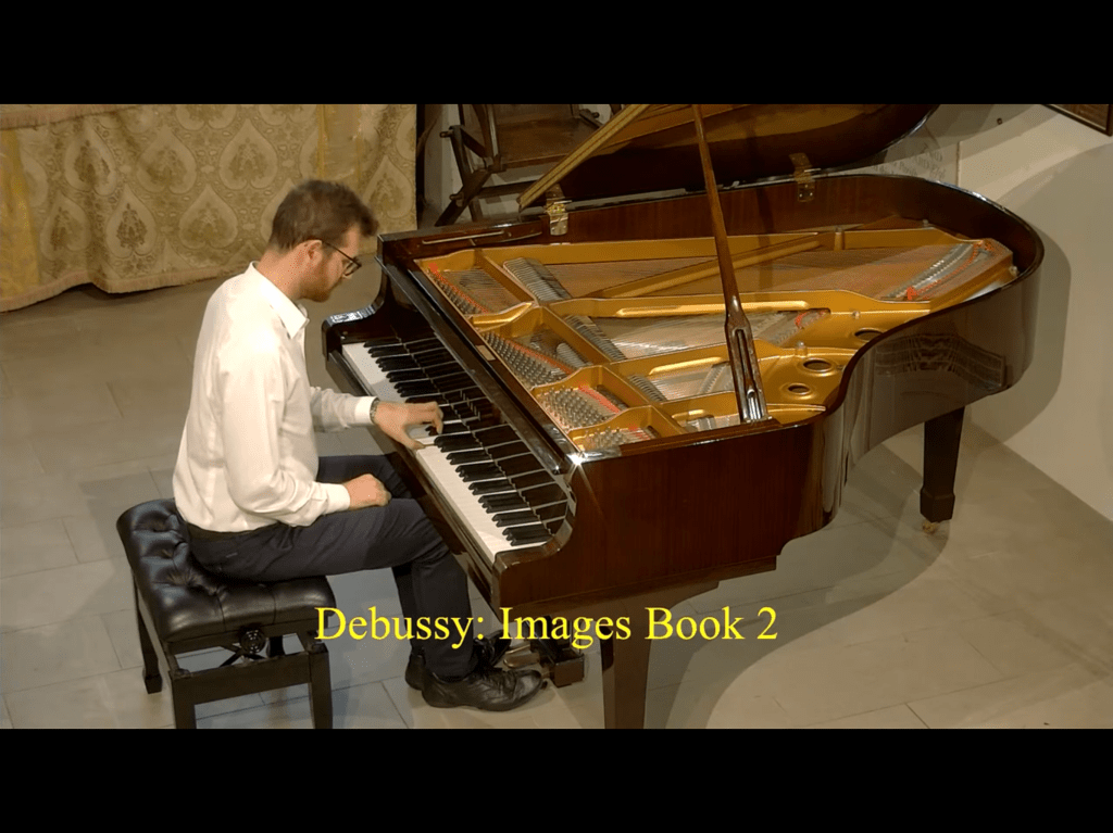 Debussy : Images (book 2) 1. Cloches à travers les feuilles (Be(blls through the leaves) 2. Et la lune descend sur le temple qui fut (And the moon sets over the former temple) 3. Poissons d’or (Golden fish)