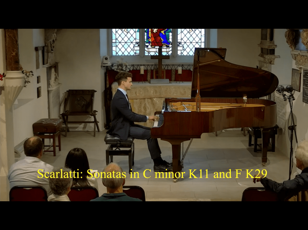 I had heard a lot about Ellis but never listened to him in live performance until today.Only 22 with a first class honours degree from Cambridge under his belt and studies that are continuing with Tessa Nicholson as a postgraduate at the Royal Academy .Well they told me he was good but they did not say HOW good !Simple,beautiful playing of great intelligence and clarity.A Scarlatti that just came vividly to life in his hands as the various strands were allowed to play and answer in the sunshine.But it was the Brahms Handel Variations that was so remarkable.Scarlatti led straight into Handel with such naturalness and ease as the ornaments spun from his agile fingers like springs uncurling.Each of the 25 variations was imbued with character style and a chameleonic sense of colour as it led inexorably to the final triumphant declaration of Handel’s innocent melody.A fugue that was played with a purity and clarity that belied the technical difficulties that Brahms delights in throwing into the arena.The final triumphant gong played with a relentless clockwork precision passing from the treble to the bass as Ellis fearlessly filled in the spaces in between.A quite remarkable performance of technical precision and perfection but above all of musicianly understanding and burning passionate temperament. Ravel was played with luminosity of ravishing flowing washes of colour.Notes disappeared as sounds of water were allowed to fill the entire keyboard that became awash with the impending stormy waters.The return to calm with the continuous splash of water was played with enviable precision by the right hand as a religious calm brought us back to the serenity and peace of the start of the voyage.Alborada was played with burning intensity of indecent Latin passion and the double glissandi were things that dreams are made of.This is a young artist of such mastery and a modesty as he thinks more of the music than himself