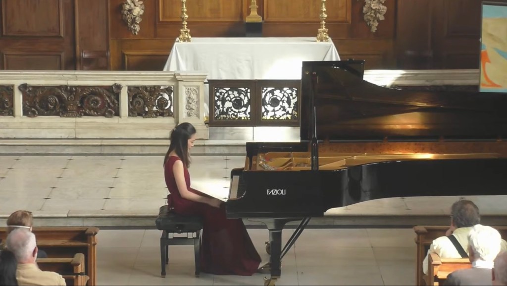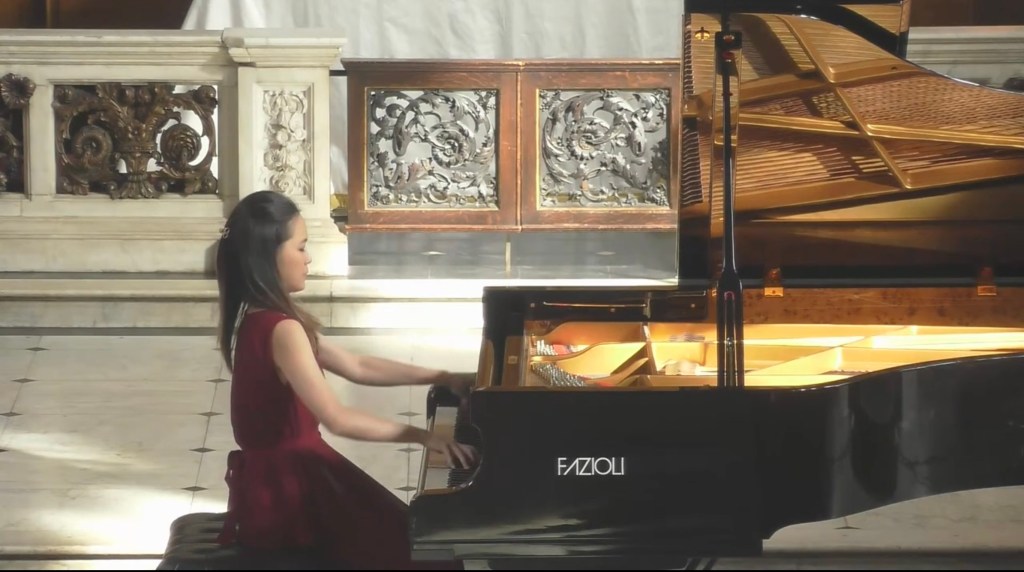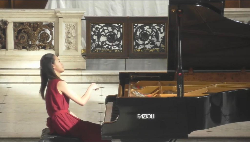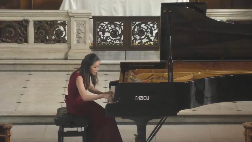 https://youtube.com/live/SOKUbHBPM5k?feature=sharedAn imposing opening immediately displayed Hao Zi’s remarkable artistry where authority is matched by poetic eloquence. An intelligence that allows her to look deep into the score and extract what the composer actually wrote and not just adhere to the so called ‘Chopin tradition’. If the opening arpeggios seemed at first rather slow one only has to look at the score to see how they were written and to hear how Hao Zi transformed them into the vital link between the central ‘più lento’ and the reawakening of the Polonaise. Passages that could in lesser hands be seen as empty scales took on a deeply poetic significance in Hao Zi’s hands as they lead into the central heart of this ‘Fantaisie Polonaise’.The ‘più lento’ was played with poetic poise as it lead to the opening fanfare that was now pregnant with poignancy.A deep nostalgic lament gradually unwinding in a tumultuous torrent of seamless scales leading to the glorious climax of the ‘Polonaise’.Played with authority ,aristocratic poise and passion as it gradually lay exhausted and spent on the final desolate A flat on high.Chopin’s penultimate work is perhaps his greatest work where architectural form and poetic content are united in a completely innovative way.