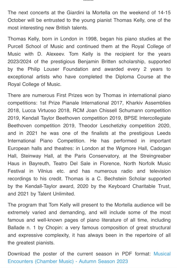 This is the recording of the concert Filippo gave for the Keyboard Trust in London including an interview and streamed live on the 1st October 2023 https://youtu.be/T_Yv6hZ9k4w