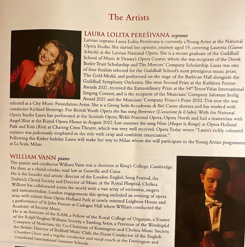 The ‘Turkish March’ by Mozart not only the last movement of his Piano Sonata but on this occasion turned into a joyous march in which her companion Lorenzo joined her at the keyboard as he also conducted the orchestra in the ‘chorus’.What a wonderfully joyous start to a glorious season of great music making .