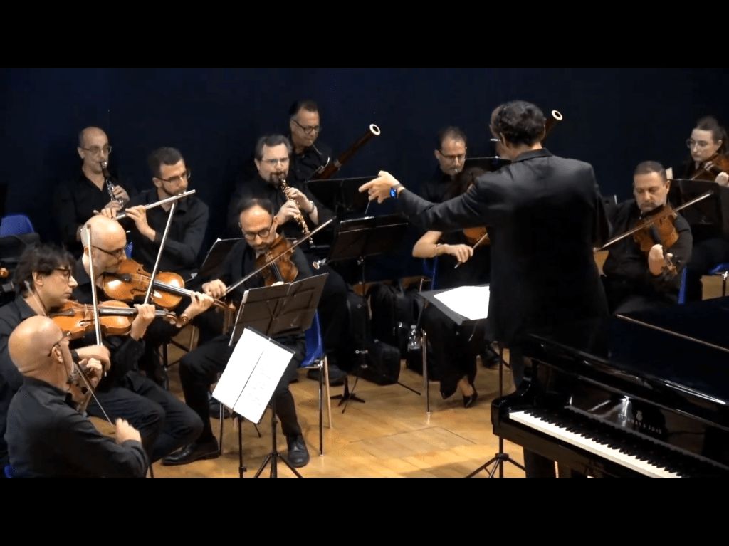 It was refreshing to watch the beauty and fluidity of the arms of Lorenzo Porzio as he waded in to the musical sea with his excellent companions.The opening Molto Allegro of the G minor Symphony with a beautifully flowing tempo and superb phrasing contrasted both the lyrical and rhythmic but never loosing the underlying drive and sense of architectural shape.There was great drama too in the development where he found a clarity of line of intelligent musicianship with the question and answer between instruments.There was a Pastoral feel to the Andante with the wind players magical accompaniment to the sublime string melodic line .A real duet of almost chamber music proportions with the players listening attentively to their musical colleagues in a real musical conversation .Overseen but never interrupted by such a sensitive conductor who realised that this remarkable Andante is the very heart of this Symphony.The Menuetto was played with a nobility of driving dance rhythms .There was a beautiful contrasting lyricism to the trio as the strings were answered by the wind with great lyricism and charm.A buoyancy to the Allegro assai with its dynamic rhythmic contrasts of question and answer between the strings and the wind all superbly directed and never loosing the overall shape of this masterpiece, much admired by Beethoven and Schubert ,which is Mozart’s final Symphonic trilogy of which this could be considered the wonderfully lyrical central movement.