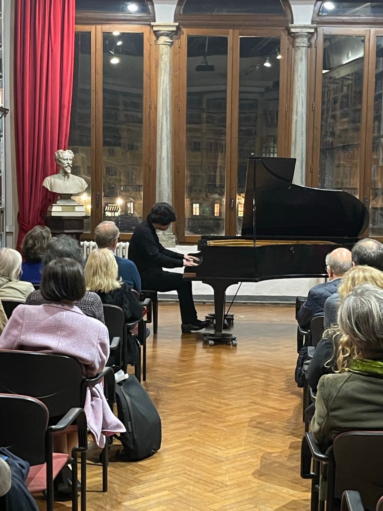 Many of her students present covered their adored Professor with flowers.The heartrending ‘Melodie’ from Rachmaninov’s ‘ 5 moreceaux de fantaisie op 3 ‘ was her way of thanking the audience with an even more ravishing kaleidoscopic range of sounds.