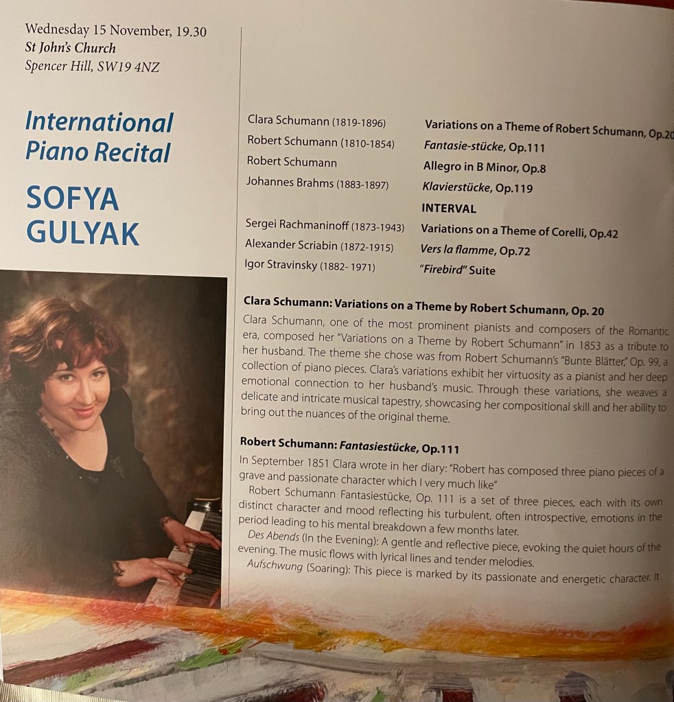 Sofya Gulyak Sofya at the Wimbledon festival with playing of a poetic mastery that was a lesson for all.Not only to hear but to see and it is no coincidence that many of her students from the RCM were present today -‘see it,say it sorted ‘ takes on a different meaning now !