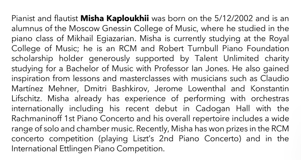 After the interval we had three works by Russian composers in which Sofya made the piano sound like a full orchestra .An extraodinary range of sound in the twenty Corelli variations where beauty and virtuosity combine in a wonderful magic box of colour and imagination .There was a Streichian insistence to the obsessive motif of ‘ Vers la flame’ that Sofya played with enormous control as the music built up in intensity to its final explosion where it burns itself out.