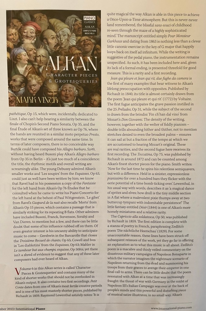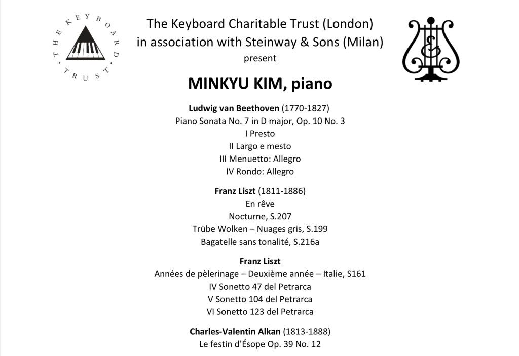 Such was the startling originality of Alkan that we see the score scattered with unconventional but very apposite indications for performance.Written in not perfect Italian but their meaning is clear and nowhere more so than in Minkyu’s transcendental performance.