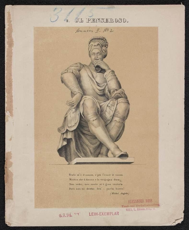 Michelangelo shows Lorenzo as a man deep in thought. Liszt must have interpreted these thoughts as a dark place, as if he were receding into the shadows. Matching this depiction, Il penseroso is a very dark piece. There is not much movement, and it is confined to the the lower registers of the piano, with many slow chords.