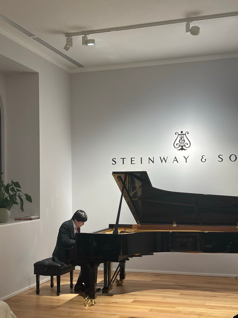 It was to open the door for Liszt’s son in law Richard Wagner just a few years later.A performance where the leit motif was so clearly outlined in Minkyu’s very intelligent hands that we could appreciate the final extraordinary pages where the motif becomes heartrendingly exhausted after its long journey.I hope one day Minkyu will record the performance and place it where it belongs side by side with its monumental twin the B minor Sonata.Only now recognised as a masterpiece even though Clara Schumann on receiving it ( it was dedicated to her husband who was already institutionalised ) described it as a horrible noise.Brahms famously fell asleep listening to it .It is now considered together with the Schumann Fantasie a pinnacle of the romantic piano repertoire.