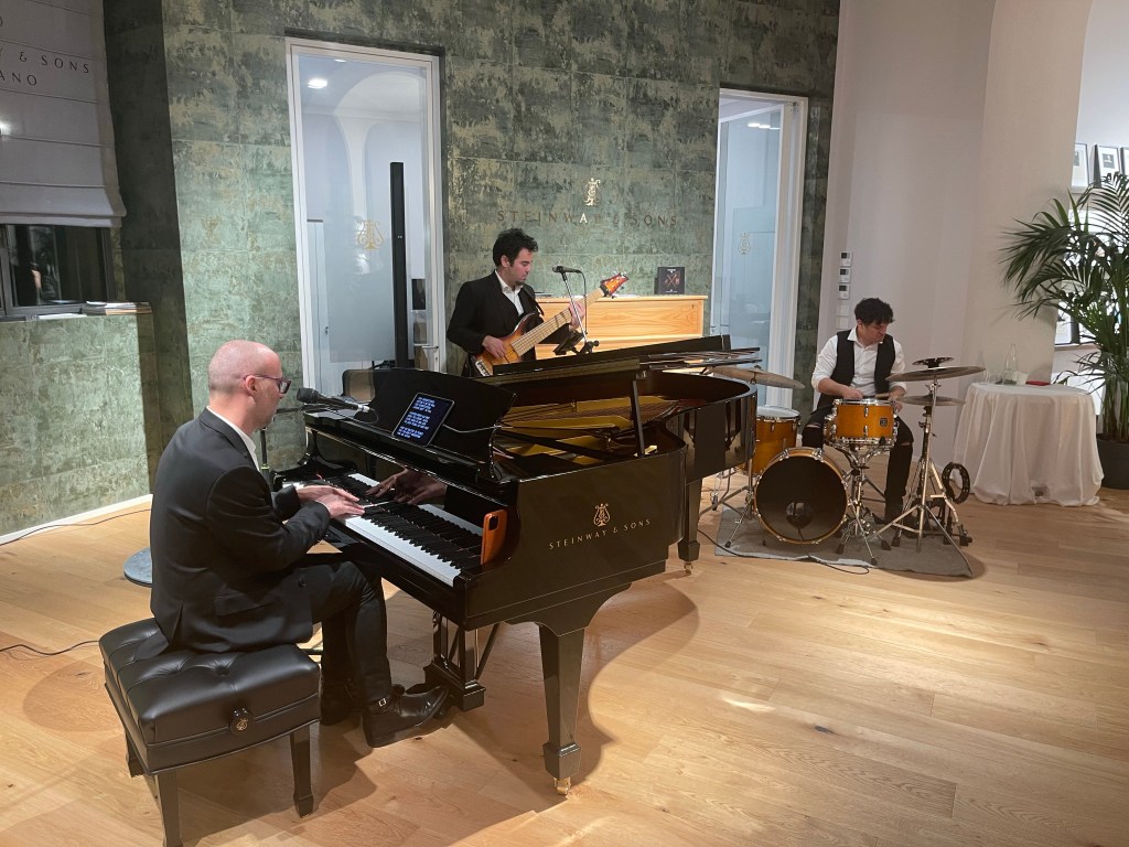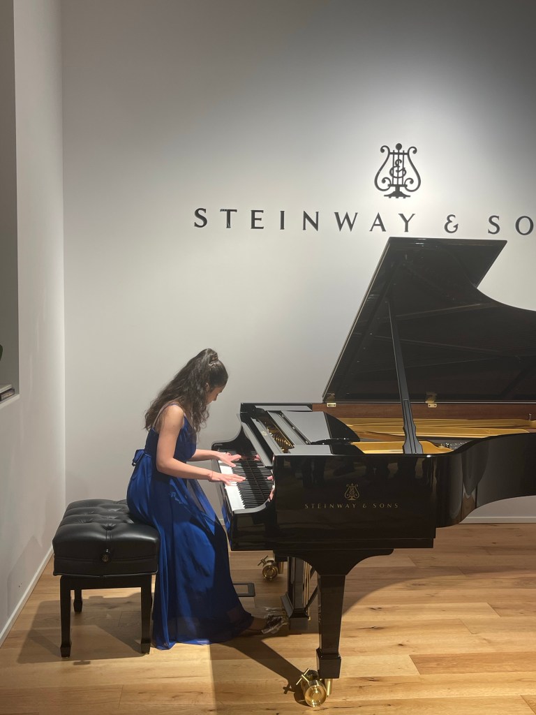 Playing on the magnificent Steinway D that sits so regally in this wonderful Flagship captained by Maura Romano…….