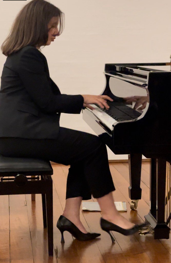 Playing in unison or solo Evelyne was always there listening and supporting with rich romantic sounds that never overpowered her fellow companions united in the turbulent youthful outpouring of romantic effusions.Deeply moving was the desolate atmosphere created at the end by the ‘cello and violin with the piano recalling what had passed with such poignant beauty and nostalgia.