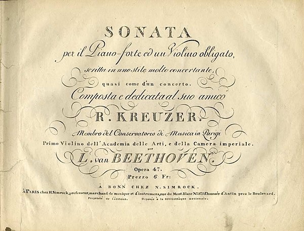 After its successful premiere in 1803, the work was published in 1805 as Beethoven’s Op. 47, with its re-dedication to Rudolphe kreitzer , which gave the composition its nickname. Kreutzer never performed the work, considering it “outrageously unintelligible”. He did not particularly care for any of Beethoven’s music, and they only ever met once, briefly.