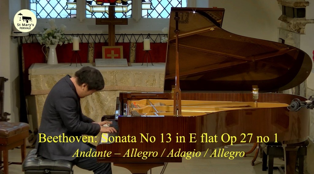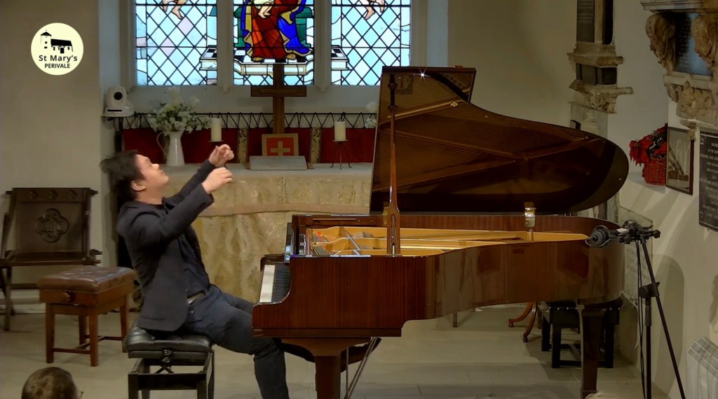 It linked up so beautifully with the opening of Liszt’s wonderful tone poem that is his 11th Transcendental Study :’Harmonies du Soir’.A gradual opening with a kaleidoscope of sounds leading to the sumptuous full spread chords where Edward drew sounds of beauty and richness that lead to the simplicity and beauty of the ‘Più lento con intimo sentimento’.A masterly build up of intensity to the sumptuous outpouring of passionate sounds only to disappeared to a whisper with the three last chords place as only a true artist could do.