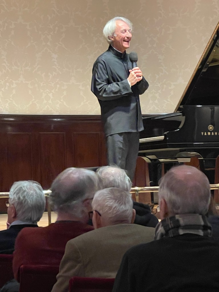 After the interval there was the frenzied dance of ‘Masques’ followed by the languid opening of Satie and the delicately etched purity of the melodic line – ‘douloureux’ – not easy on this rather ungrateful Yamaha that had been imported specially for the occasion!