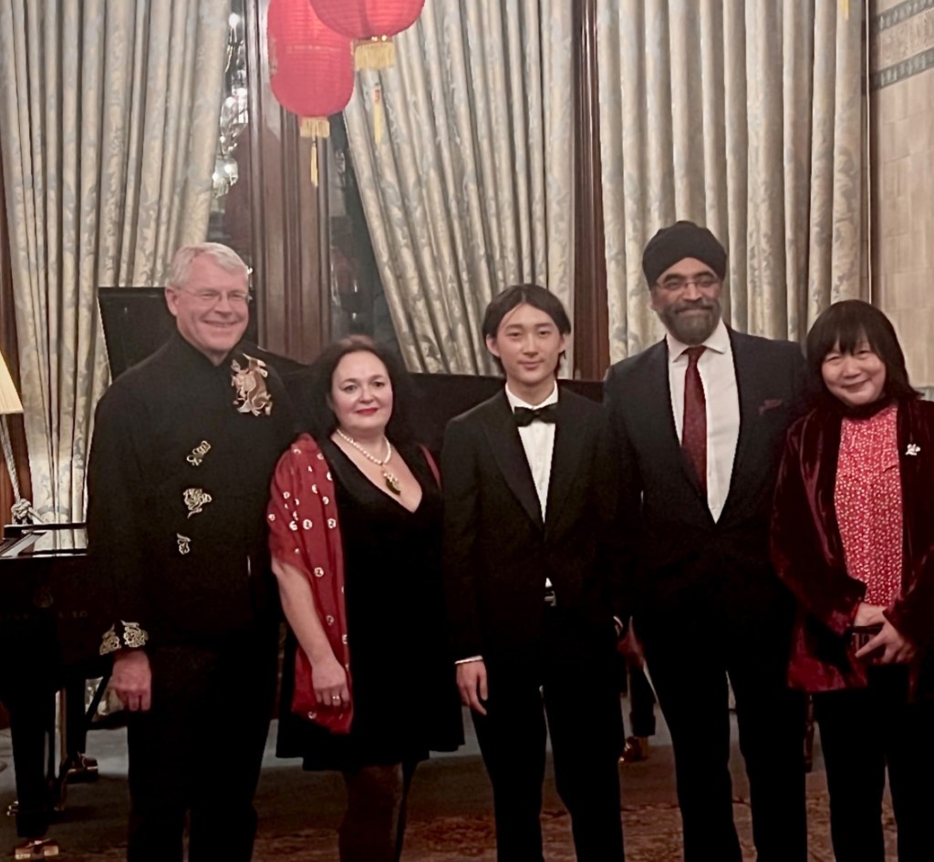 An extraordinary performance of Liszt’s notoriously difficult ‘ Don Giovanni Fantasy’ that was played with an ease and technical mastery that was quite astonishing. There are some things that cannot be taught and the burning passion that comes out in his performance are God given gifts of the blessed few. Ryan is totally convinced of what he is doing .The character he gave to all the different personages in this great fantasy was quite extraordinary as it unfolded with ever more diabolical virtuosistic invention .An overwhelming performance from a young man who had been sitting quite placidly at the dinner table with a public intent on celebrating first with a lecture and speeches and then a sumptuous Chinese dinner .Seated at the piano ,at last ,the public who had come to celebrate the Year of the Dragon ended up celebrating the birth of a star. He had started learning this work on his own only a month ago and the charming scintillating Chinese Folk Song that completed this short cameo performance he had learnt only three days ago! We must not forget that Ryan is still a schoolboy with 9 CSG’S behind him and much more academic work still to come as he starts to share his music Internationally too.