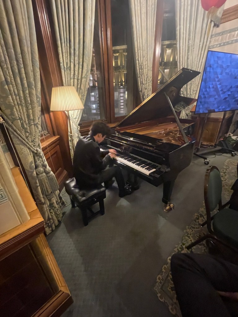 Together with the Keyboard Trust Yuanfan and many others have found a platform on the wonderful Steinway Concert Grand that stands in what used to be the kitchen of the National Liberal Club .Now the beautiful Lloyd George Room where this great piano has been newly acquired for the club where Rachmaninov had given his last concert performance in 1939 before leaving for America .He died in 1943 never to see the end of the catastrophic World War that had overtaken Europe .
