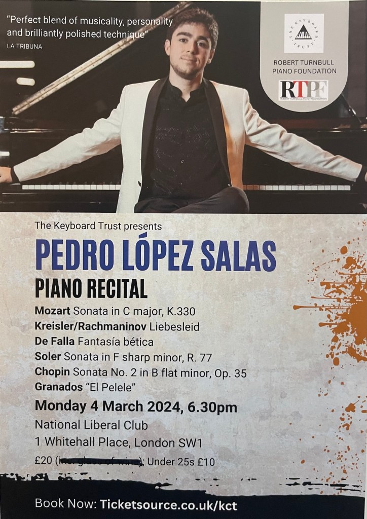 Grace Dong .A well oiled Haydn in which her agile fingers spun Haydn’s fine web of sounds but missed a little of the charm and style that she was only to find in the beautiful Adagio.A kaleidoscope of colours in Estampes and some very beautiful moments in Liszt’s tragic tale of Hero and Leander but where the great sweeps of sound in the virtuoso passages were strangely divorced from this harrowing tale . https://youtube.com/live/nFAoqKblBx0?feature=sharedThomas Luke winner at 16 in 2020 of the BBC young musician keyboard prize.Now at the age of 19 he gave a beautiful performance of Scriabin’s Fantasy Sonata that was played with sumptuous sounds and technical assurance.If his Bach and Haydn were a little too earthbound and Chopin’s dynamics a little exaggerated he is learning to fly under the artistic guidance of Alim Baesembayev and Vanessa Latarche who are sure to give him the wings to fly ever higher.Diana Cooper from the class of Norma Fisher showed herself to be a real artist .Mozart of great beauty even if the Allegretto was taken at breakneck speed.Scarlatti that had been like a spring being released and more ‘ toccata’ than dance .An astonishing Alborada and a ravishing Oiseaux tristes .The beauty of the Andante Spianato suddenly became a Polonaise that was more ‘brillante’ than scintillating and beguiling. Competitions are for horses and being forced to jump hurdles faster and higher than another can lead to a born artist sacrificing quality for quantity. Competative music making is obviously not for an artist of Diana’s stature .