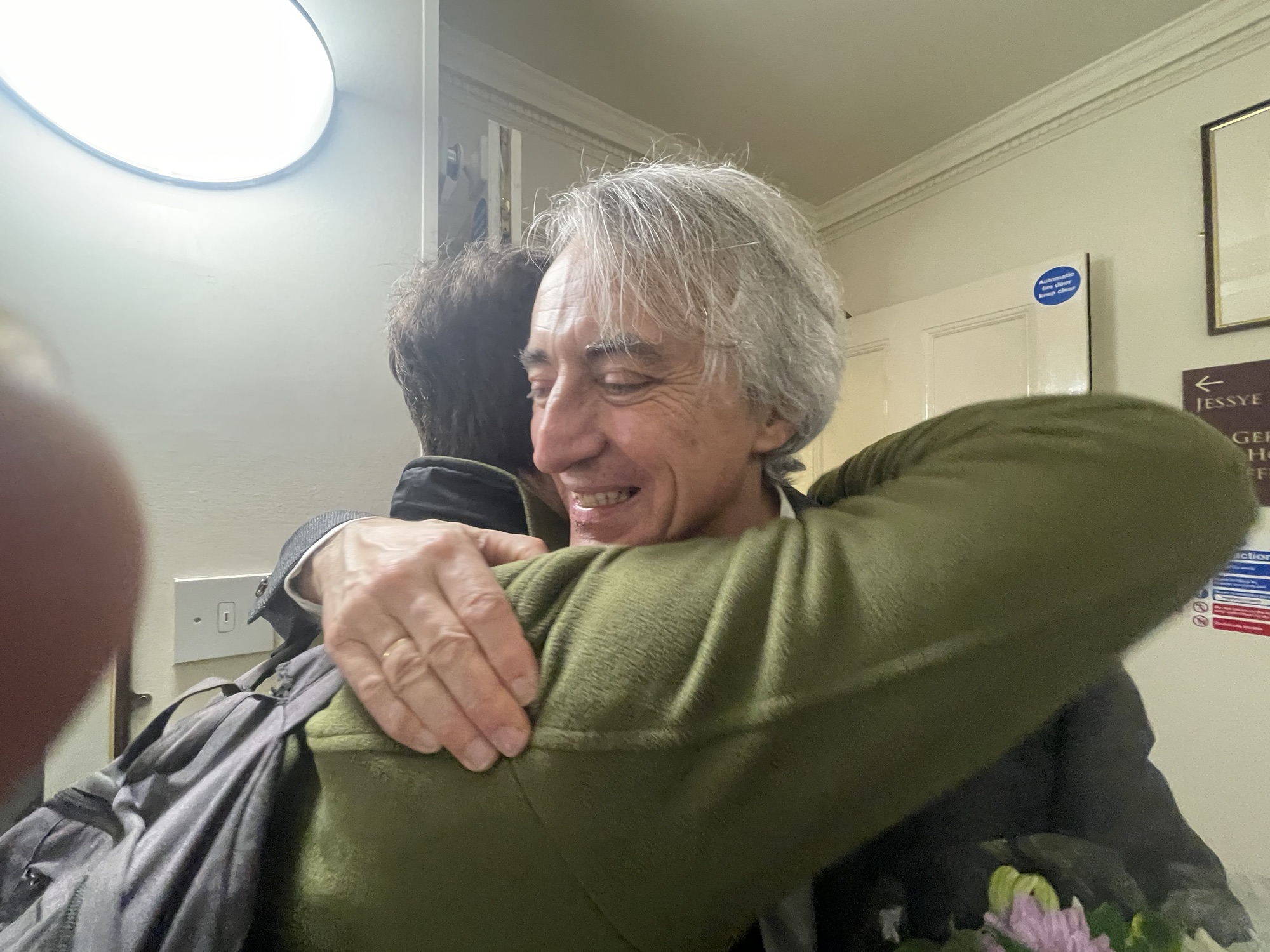 Party time in the Green room with the New York critic and commentator Jed Distler in town by chance to meet a master.A first physical meeting although Bavouzet knew and had read Jed’s writings – even the bad reviews because it comes from someone who is also an artist and really knows ! Jed of course charmed as we all had been all evening.