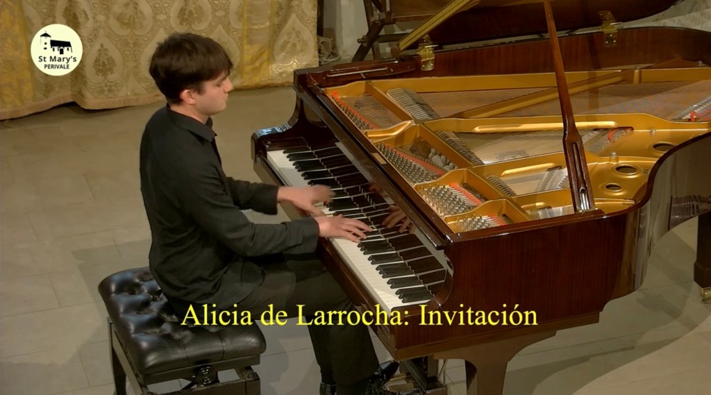Playing of simplicity and chiselled beauty from Matthew Mc Lachlan one of the three young siblings of Murray McLachlan .A family of remarkable musicians who have all performed many times at St Mary’s.Matthew had surprised even himself when only in his second year at the Royal College of Music in London he was awarded the coveted Chappell Gold Medal for an extraordinarily beautiful performance of Scriabin’s elusive twenty four preludes op 11.Today it was in particular his beautifully lyrical and committed performance of Prokofiev’s somewhat neglected fifth sonata that captured his imagination .A performance of such simplicity as Prokofiev in lyrical mood could show us that there is a side to his compositions that is not always hard driven with canons being fired.The beautiful second movement in particular showed off Matthews control as he allowed the melodic line to shine above a relentless pizzicato left hand .A refined kaleidoscope of sounds that Prokofiev had revealed so poetically in his Visions Fugitives .It had followed performances of Bach where there was a pastoral calm as the voices were allowed to converse with each other creating a knotty twine of tranquility and peace.He had chosen too the two movement Sonata by Beethoven ‘A Thérèse ‘ where the gentle lyricism of the first beautiful phrases opened onto a fluidity and playfulness of beguiling charm and character.The hauntingly beautiful Etude Tableau by Rachmaninov was shaped with rubato and ease just as the beautiful little piece by Alicia de Larrocha was played with simple mellifluous style.Mompou’s beautifully atmospheric Cancion was an ideal partner for such delectable flowing sounds full of radiance and colour.The Butterfly Dream by Petar Dimov was indeed the ideal introduction ,as Matthew had explained ,for the beautiful lyricism of the opening of the Prokofiev Sonata .This was a pianist in poetically lyrical vein today with playing beauty and radiance.
