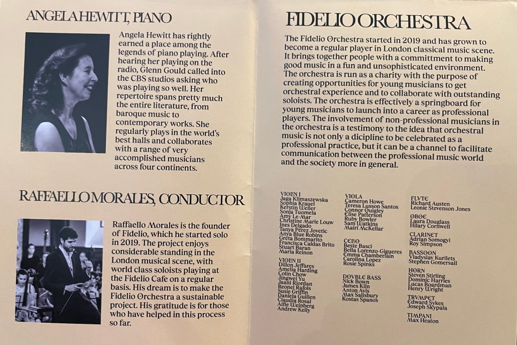 Tonight she was supporting the Fidelio Orchestra that has been created by Raffaello Morales with ‘the purpose of creating opportunities for young musicians to get orchestral experience and to collaborate with outstanding soloists’.Similar to the Southbank Sinfonia in London and the Roma Tre Orchestra in Rome and to some extent the Oxford Philharmonic of Marios Papadopoulos.