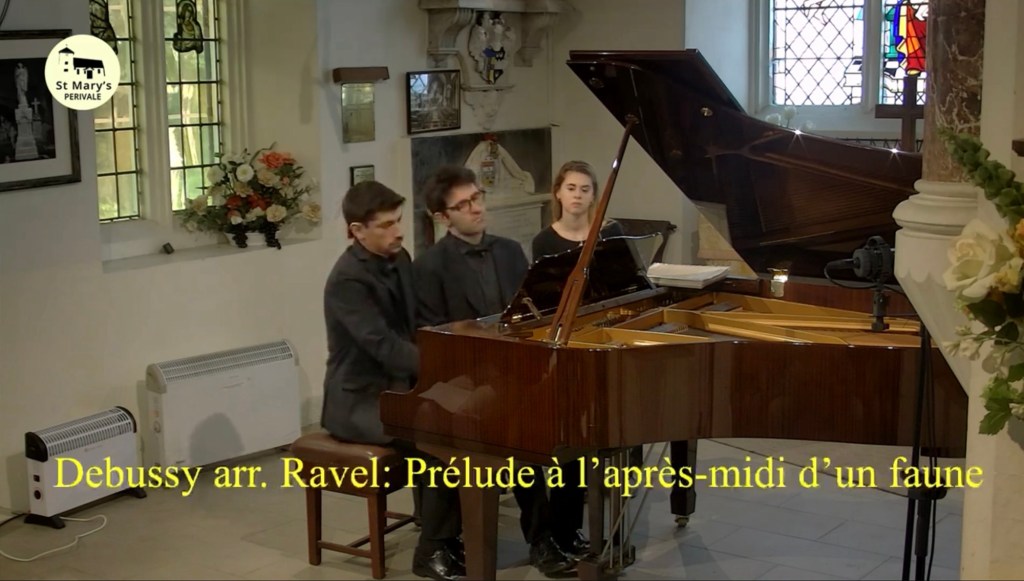 The dynamic changes of character and driving rhythms from this piano duo created a hypnotic atmosphere from the beauty of the introduction similar in many ways to the Debussy Faune,but erupting into savagery with the pungent rhythms from Alessandro of the ‘Dances of the young girls’.It is interesting to note that it was Debussy who first played this original version for four hands with the composer.