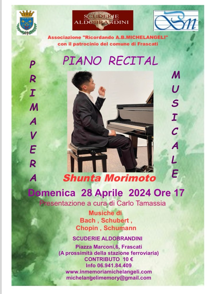 Some more superb playing from Shunta Morimoto in his annual recital in the Villa Aldobrandini in Frascati.