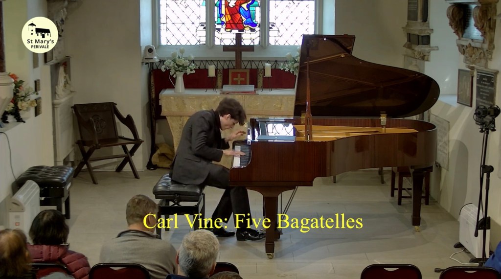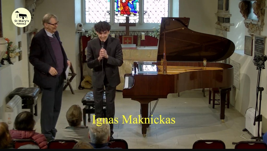 The concert had begun with Schumann’s Kinderscenen that must be a new work in Ignas’s repertoire.It was played with disarming simplicity and an overall architectural shape but missed the ravishing colour and sense of fantasy that he was to reserve for later in the programme.A beautiful fluidity and sense of balance as the tale of distant lands unfolded with simplicity leading to a curious story of beautifully interwoven sounds.A dynamic drive to the Blind man’s buff also given an overall shape as the counterpoints in the pleading child were so delicately described.If perfect happiness was rather breathless it was only because he could not wait to show us the grandeur and nobility of a Great Adventure.Traumerei had a flowing beauty but missed the magic that was to come later in the programme.His beautiful liquid sound though allowed this most beautiful of Reverie’s to be expressed with disarming simplicity.There was a flowing beauty by the Fireside before the simple drive of the Rocking Horse.Almost too serious flowed directly into the Hobgoblins schizophrenic antics and the gentle slumbers of the child sleeping.But it was the Poet speaks that suddenly ignited Ignas’s imagination and was indeed a poet who had found a voice that illuminated the piano ready for the sumptuous sounds of Vine and Bortkiewicz.This is obviously a work in progress just as I had watched his Schumann Fantasy and Schubert B flat Sonata gradually be transformed from a pianist who had learnt his lesson and was now being recreated with great artistry as he had delved deep and found the gems that lay hidden to all but the very few.I await the next performance of Schumann when he has surely found the key to this chest of jewels.https://youtu.be/UroWVTDb8Oo