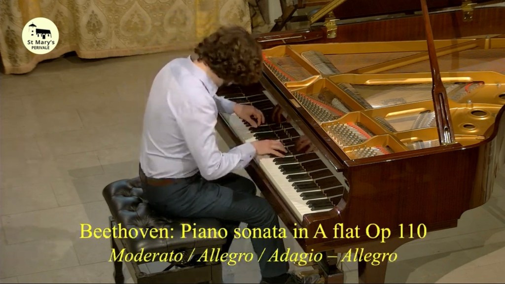 But it’s in the finale that the weight of the sonata lies, and it begins with a declamatory, recitative-like passage that starts in the minor, moving to an emotionally pained aria-like section.Beethoven introduces a quietly authoritative fugue, based on a theme reminiscent of the one that opened the sonata. Its progress interrupted by the aria once more, its line now disjunct and almost sobbing for breath. The way in which the composer moves into the major via a sequence of G major chords is a passage of pure radiance, that Edwin Fischer described as ‘like a reawakening heartbeat’. This leads to a second appearance of the fugue in inversion culminating in a magnificently triumphant conclusion.