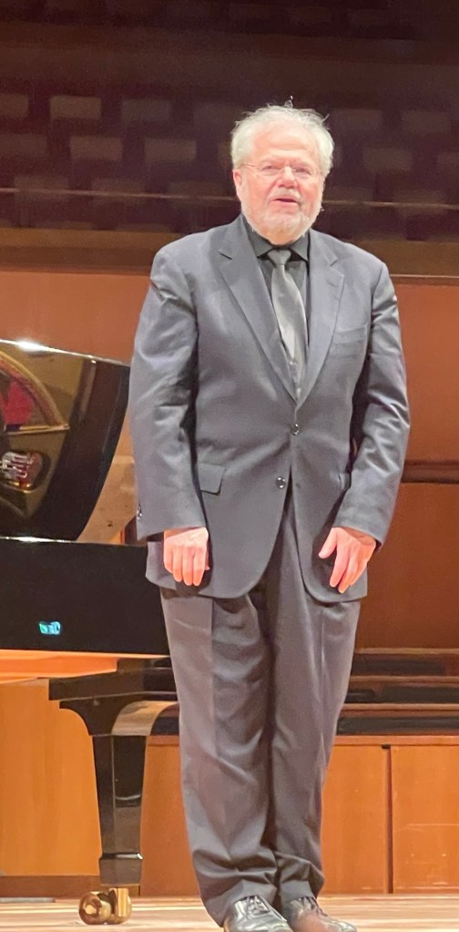 The ‘Pathétique’ sonata was as though hearing it for the first time such was the palette of sounds where the notes were not projected out to this vast hall but the audience were drawn in to him.By some magic,called consummate artistry, he managed to play with whispered sounds of luminosity and beauty which arrived in the nearest and farthest seats with the same intensity.A singer with a diaphragm is an art that is rapidly being forgotten as more and more artists rely on acoustically assisted sound to help them in the vast halls that are springing up throughout the world . But the few great artists,one of which is certainly Emanuel Ax ,that still grace the concert halls have cultivated this art as part of their genes with a lifetime of sharing music with audiences worldwide. It is nice to note that Emanuel Ax was much admired at the first Rubinstein competition where the great maestro awarded him his Gold Medal. Much as Rubinstein years earlier had also awarded an 18 year old Pollini the Gold Medal at the Chopin Competition in Warsaw.Rubinstein famously and with his great generosity exclaimed that this young man played better than any of them on the jury!