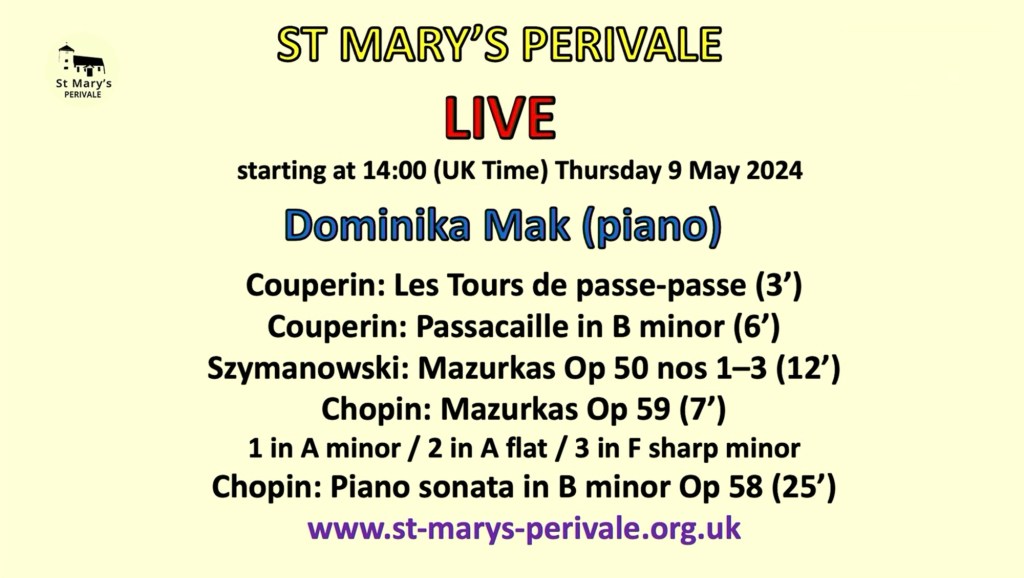 Some beautiful refined playing of great intelligence and simple artistry from Dominika who had come to the rescue at the last minute of an indisposed clarinettist due to play in Hugh Mather’s Young Artists Series in Perivale.