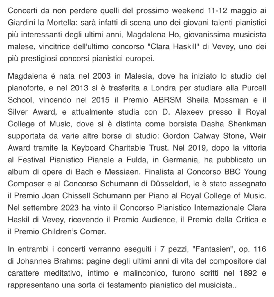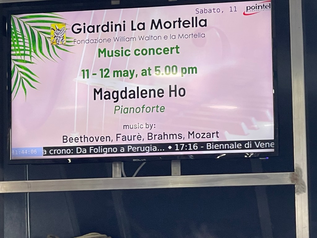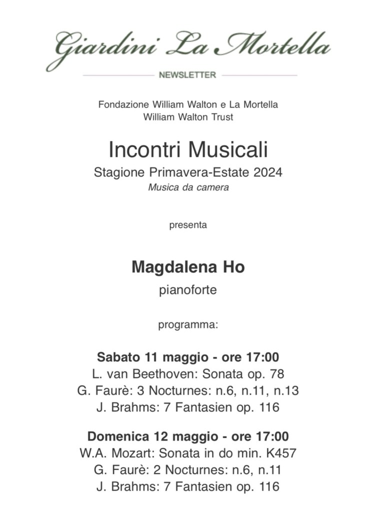 A standing ovation for Magdalene Ho on the Walton’s estate of La Mortella ……..The artistic director Lina Tufano exclaiming that she is one of the greatest talents to have ever graced this paradise .