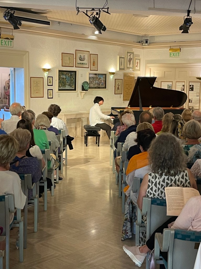 And today Magdalene had a little secret up her sleeve with two encores in the style of the scintillating playing of Lhevine,Hoffman,Godowsky or Rachmaninov .Playing of the Golden Era of Piano Playing when at the end of a recital pianists would allow themselves to indulge in playing of teasingly beguiling half shades and technical wizardry. I had suggested to Magdalene that she could finish on a high with some pianistic acrobatics instead of another tribute to Fauré that she had suggested .Well she locked herself away with a piano for five minutes whilst she brushed up some pianistic lollipops that she had not played for quite sometime.