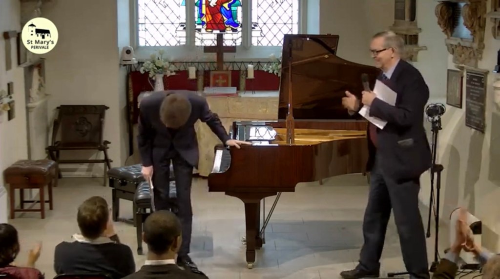 An ovation as rarely seen in Perivale and our host unusually lost for words, was greeted by the Mendelssohn Song without Words in E major op 30 n. 3 .Just one page but there was magic in the air that this young piano genius had created with music making as rarely witnessed before at St Mary’s in over 800 concerts.