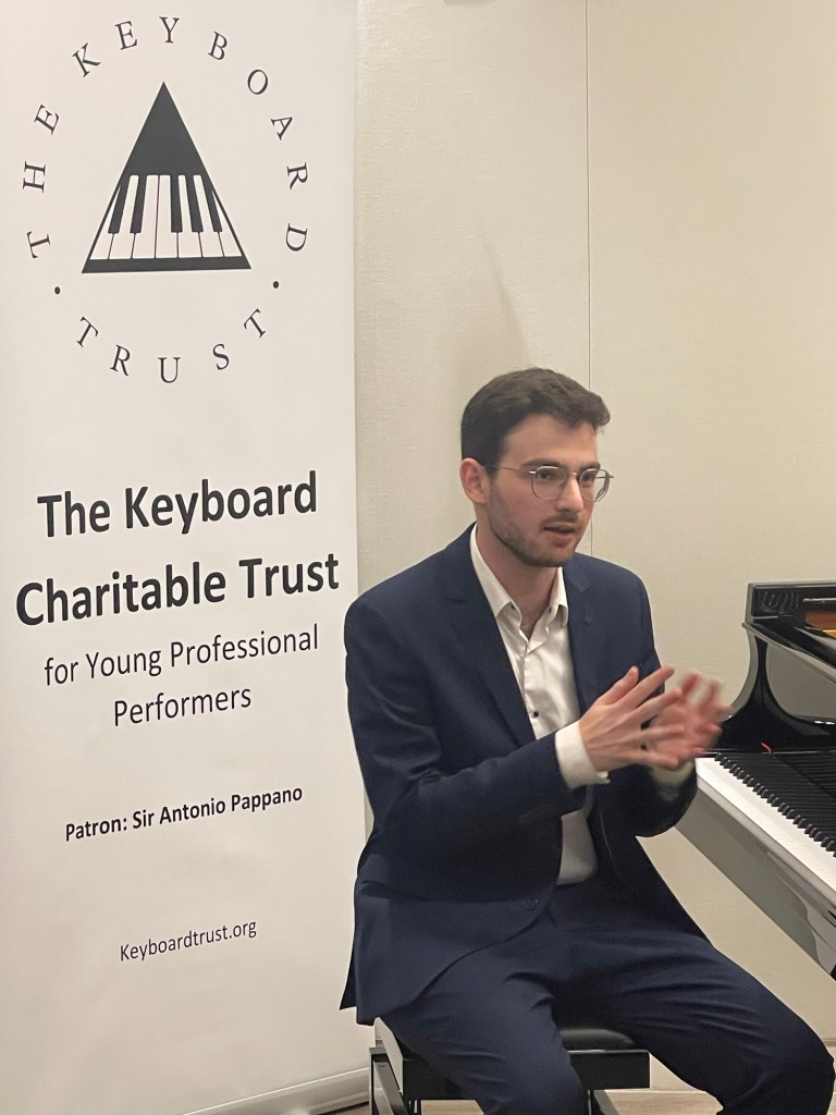 Studying for his Masters at the Royal Academy he not only demonstrated his notable pianistic credentials but also his intelligence and eloquence in the short conversation he had with Elena Vorotko,one of the artistic directors of the KT,at the end of his short showcase recital.