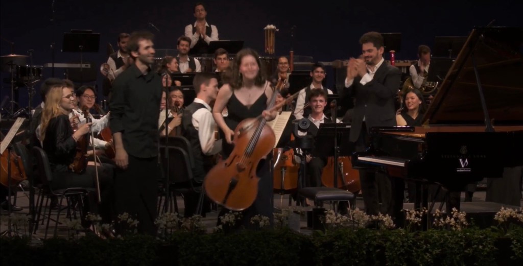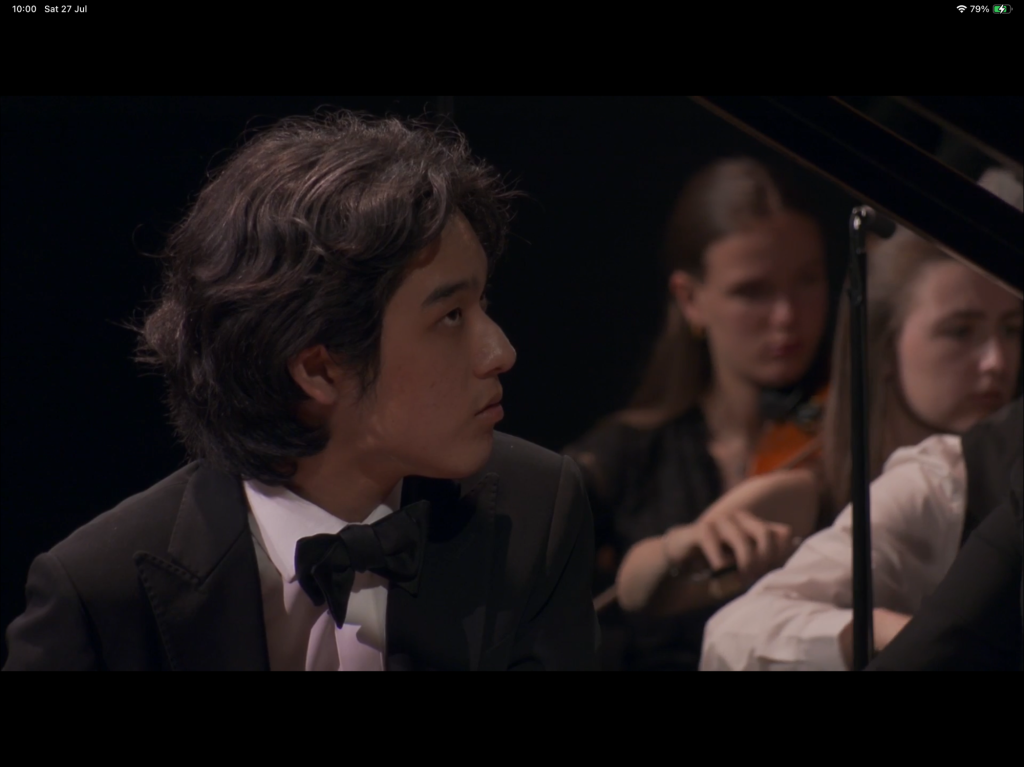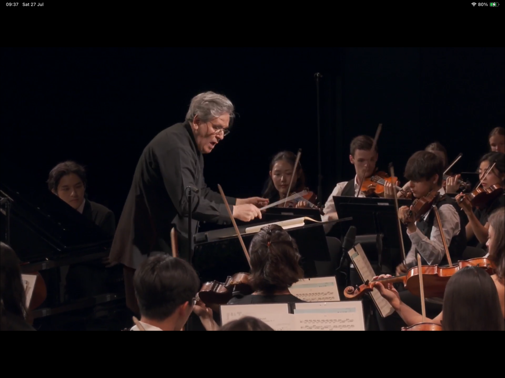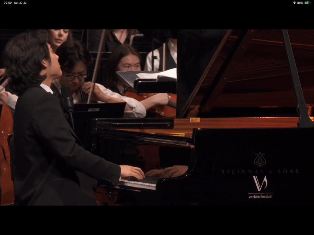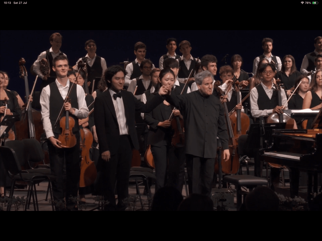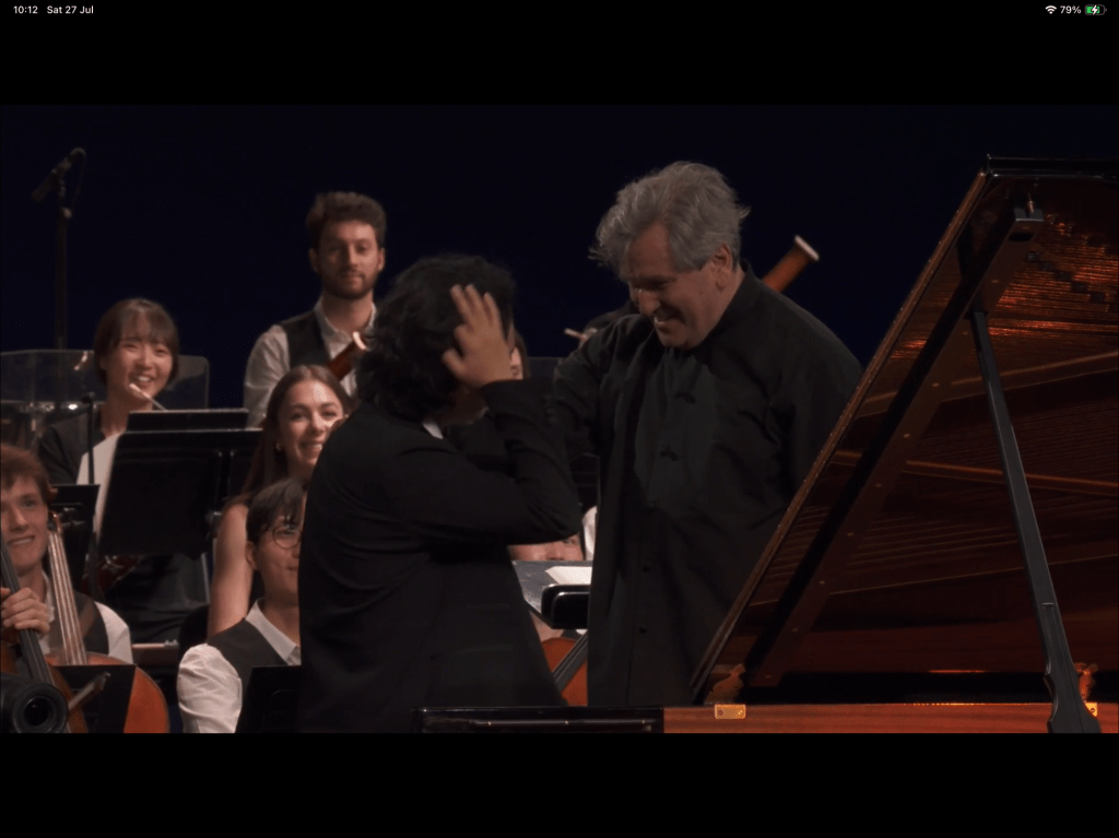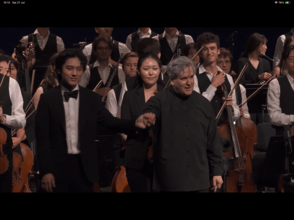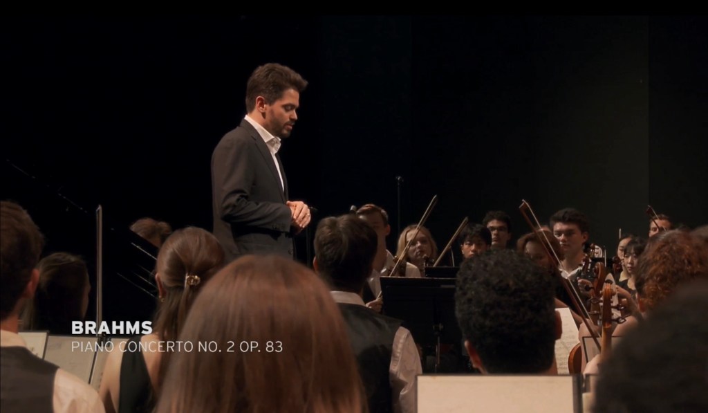 Monday in Verbier playing the Brahms Second Piano Concerto a work I had heard him play a few month ago with his father conducting .Today he was conducted by Lahav Shani who had recently been conducting Martha Argerich in Rome and himself playing at home Prokofiev Third with his Rotterdam Philharmonic. Conducting without the score he was able to delve deep into the heart of Brahms as he and Kantorow ignited the passion of these young players re-creating together what Brahms called ‘a very small concerto with a small and pretty scherzo’.It is in fact a difficult work to master because on one hand it is one of the longest and most arduous of concertos, but on the other it has qualities that are pure chamber music .This is a work only for the greatest of musicians who can weave in and out of a monumental work without ever dominating or overpowering the architectural line.Many pianists succeed with the First concerto but are unable to come to terms as successfully with the second. Kantorow had chosen Brahms 2 and Tchaikowsky 2 that brought him an overwhelming victory in the competition in Moscow in 2019.