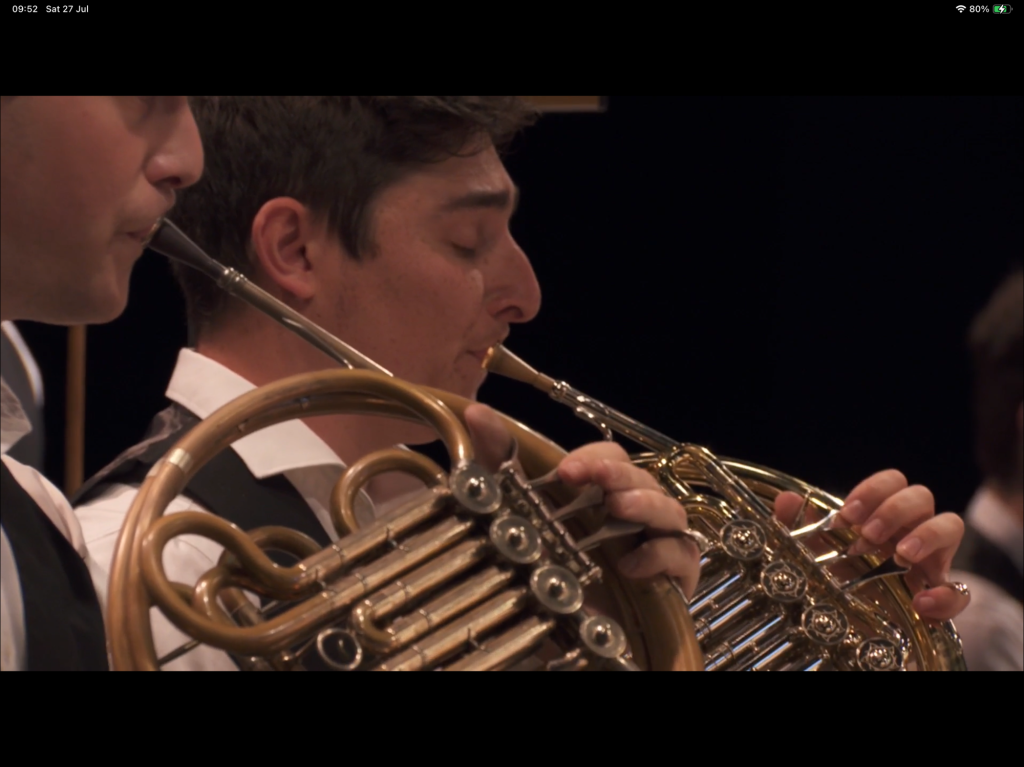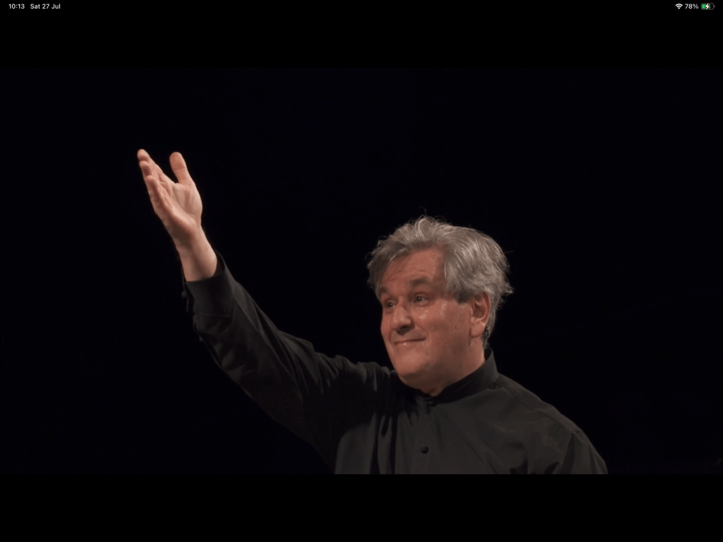 The Brahms of Kantorow is grandiose with sumptuous sound ,thinking always in orchestral terms never purely pianistic.It was immediately apparent the chamber quality of this work with the beautiful opening solo horn and the gentle comment from the piano where the final top F from the pianist shone like a gentle star in the distance as the full orchestra began to take their place.Brahms marks staccato very often but these are orchestral staccati that are full and robust ,more marcato than staccato .The pianistic crossing of hands at the end of the cadenza was a genial way of keeping control of the build up to the entry of the full orchestra.