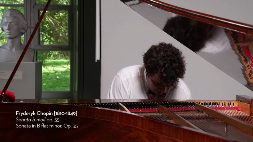What a marvel this streaming is ! I was not expecting to be invited into such an intimate atmosphere where there was just a magnificent pianist playing Chopin’s piano ( an Erard of 1838 ) in the house where Chopin was born. An ideal situation for a historic instrument , which is lost when brought into the modern day concert hall, but in this intimate atmosphere becomes the very voice of Chopin. Sounds that he would have known and loved as he pioneered a completely new way of using a keyboard instrument with a pedals .It was Anton Rubinstein who had said that the pedals were the soul of the piano and it was the genius of Chopin who could create such a revolutionary new world on the evolving keyboard instruments of his time.Schumann was the first to notice when an eighteen year old pole presented himself in Paris with his own composition op 2 :”Hats off Gentlemen,a Genius !”.