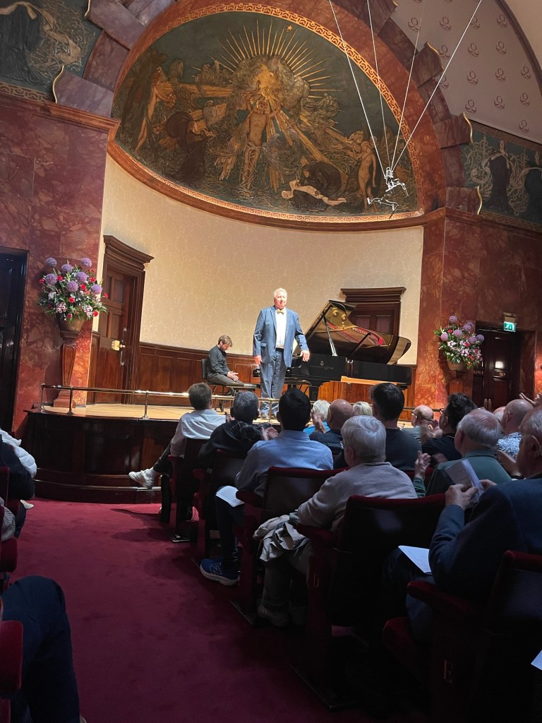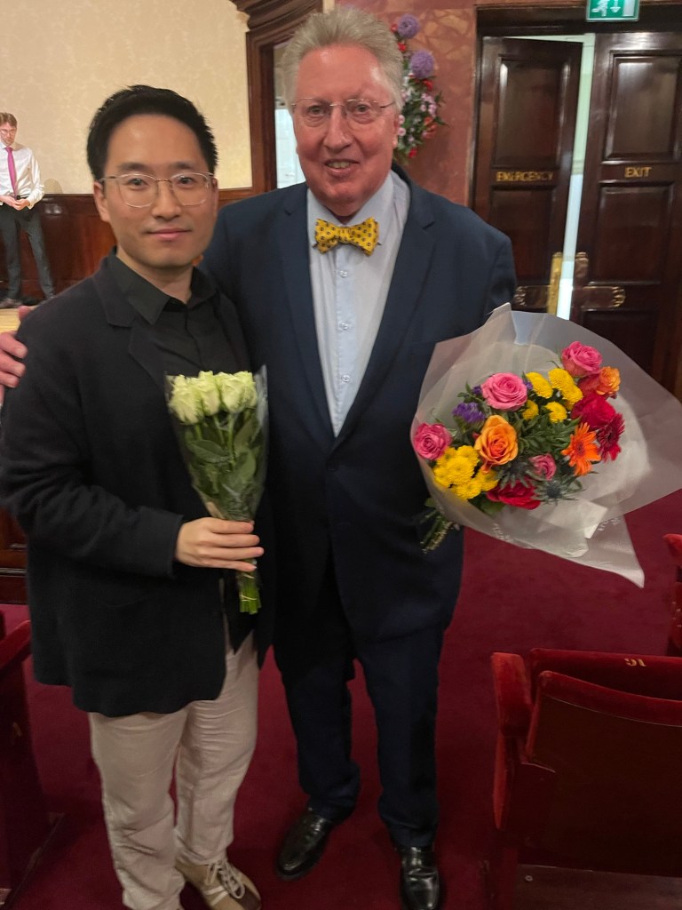 The Rubinstein Sonata that Leslie has long been an advocate, is a work of great importance.It has suffered the fate of Rachmaninov’s First Sonata always in the shadow of the Second which was launched in our day by Horowitz and is now overplayed.It has taken Kantarow to show us the way with the First Sonata which is now being taken up by many pianists in the Juilliard School.Listening to Leslie with playing of absolute clarity and authority that gave an architectural shape and above all an overall sound and will open the way for other pianists to follow . There was the same sense of leit motiv in the first movement which can sometimes get submerged by the cascades of notes and chameleonic changes of character that abound .There was a dynamic rhythmic energy to the ‘Scherzo’ and a glorious outpouring of luxuriant melody to the ‘Andante’ with its strange chordal meanderings that Leslie shaped with poignant meaning.There was a relentless forward drive to the ‘Allegro assai’ that just shot from Leslie’s fingers with military precision.Moving inevitably and with scintillating virtuosity to a final melodic climax before the grandiose ending.