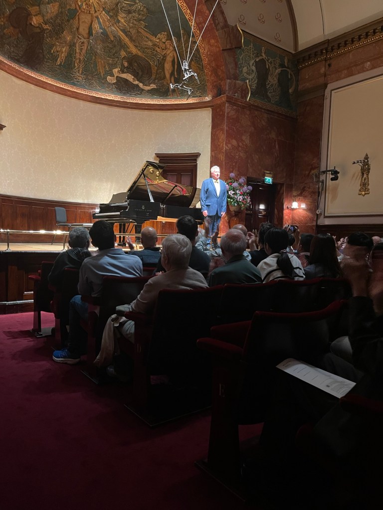The Wigmore full up with pianists today to greet the Prince of Pianists who has so generously encouraged and supported so many young musicians over the years. It is with the same courage that the most eclectically inquisitive of all pianists presented a programme that none of those pianists has probably heard before .