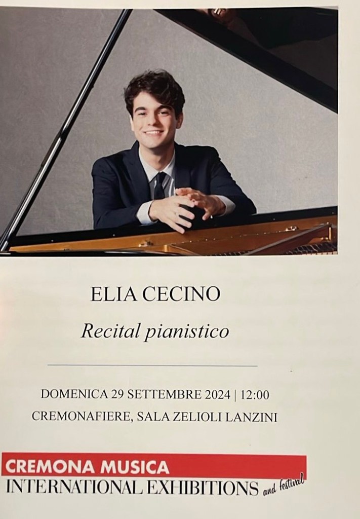 Elia Cecino is a recent first-prize winner at the Iturbi International Piano Competition 2023 in Valencia, where the jury chaired by Joaquín Achúcarro also awarded him special prizes for best interpretation of a Beethoven concerto and best interpretation of Chopin’s music. Elia won first prize at the New Orleans, “James Mottram” competitions in Manchester and Ricard Viñes in Lleida. In 2020 Suonare Records released his debut CD dedicated to music by Beethoven, Chopin and Skrjabin, and a second monographic album on Chopin was released by OnClassical in 2021. He has appeared as soloist with orchestras such as Royal Liverpool Philharmonic, Orchestra del Teatro La Fenice, Israel Philharmonic, Israel Camerata Jerusalem, Louisiana Philharmonic, Simfònica del Vallès, Sinfónica de Galicia, Orquesta de València, Düsseldorf Symphony Orchestra, Sichuan Philharmonic, Bacau Philharmonic, Sinfonica di Milano, FVG Orchestra, Sinfonica Città di Roma.